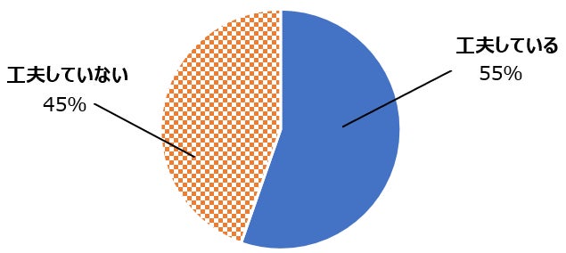 『調理後にフライパンを洗うことが面倒だと感じますか?』について質問したところ、全体の49%が「面倒だと感じている」という結果が分かりました。また、洗う手間を減らすために調理手順を工夫している人が55%と、過半数がフライパンを洗う手間を減らすため工夫していることが分かりました。