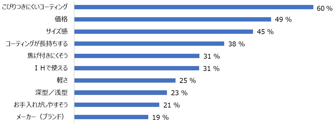 フライパン購入時に重要視されているのは「こびりつきにくいコーティング」!