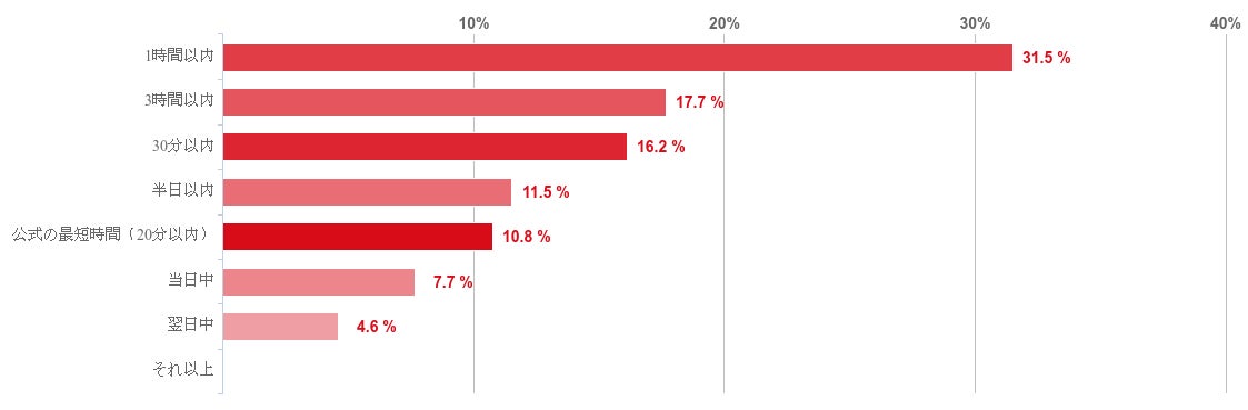 アコムの審査結果が通知されるまでの時間は、「1時間以内」が最も多く31.5%、続いて「3時間以内」が17.7%、「30分以内」が16.2%となった。