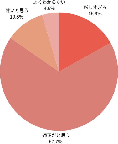 アコムの審査基準については、「適正だと思う」人が67.7%で最も多く、「甘いと思う」人も10.8%いた。
