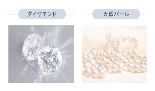 1. 純正ダイヤモンドと天然パールを配合し、上品な輝きを添える