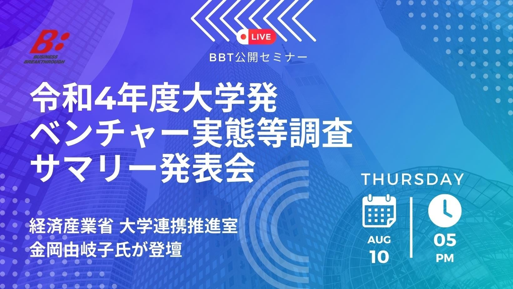 【BBT無料公開セミナー開催】令和4年度「大学発ベンチャー実態等調査」のサマリー発表