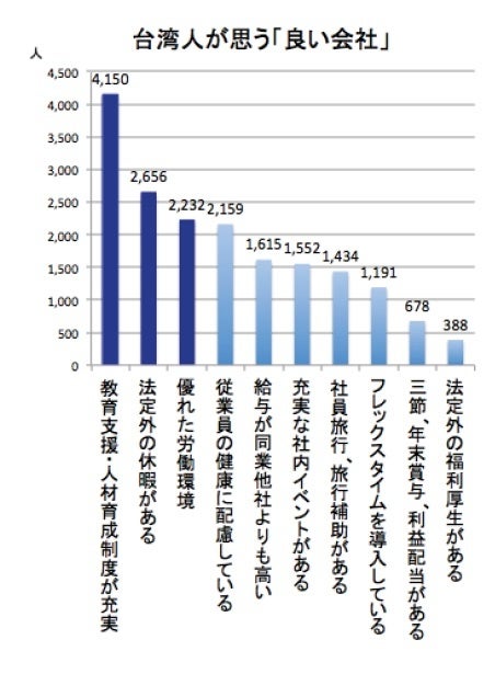 さて、その前に、まず社員たちはどのような企業に魅力を感じるのでしょうか? AIを駆使し、毎年10億件超のデータを分析しているリサーチ会社「KEYPO」の調査 による、台湾人社員が思う「良い会社」の 定義は以下の通りとなっております!