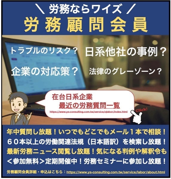 台湾最新の労務情報をお届けします<ワイズコンサルティング@台湾>