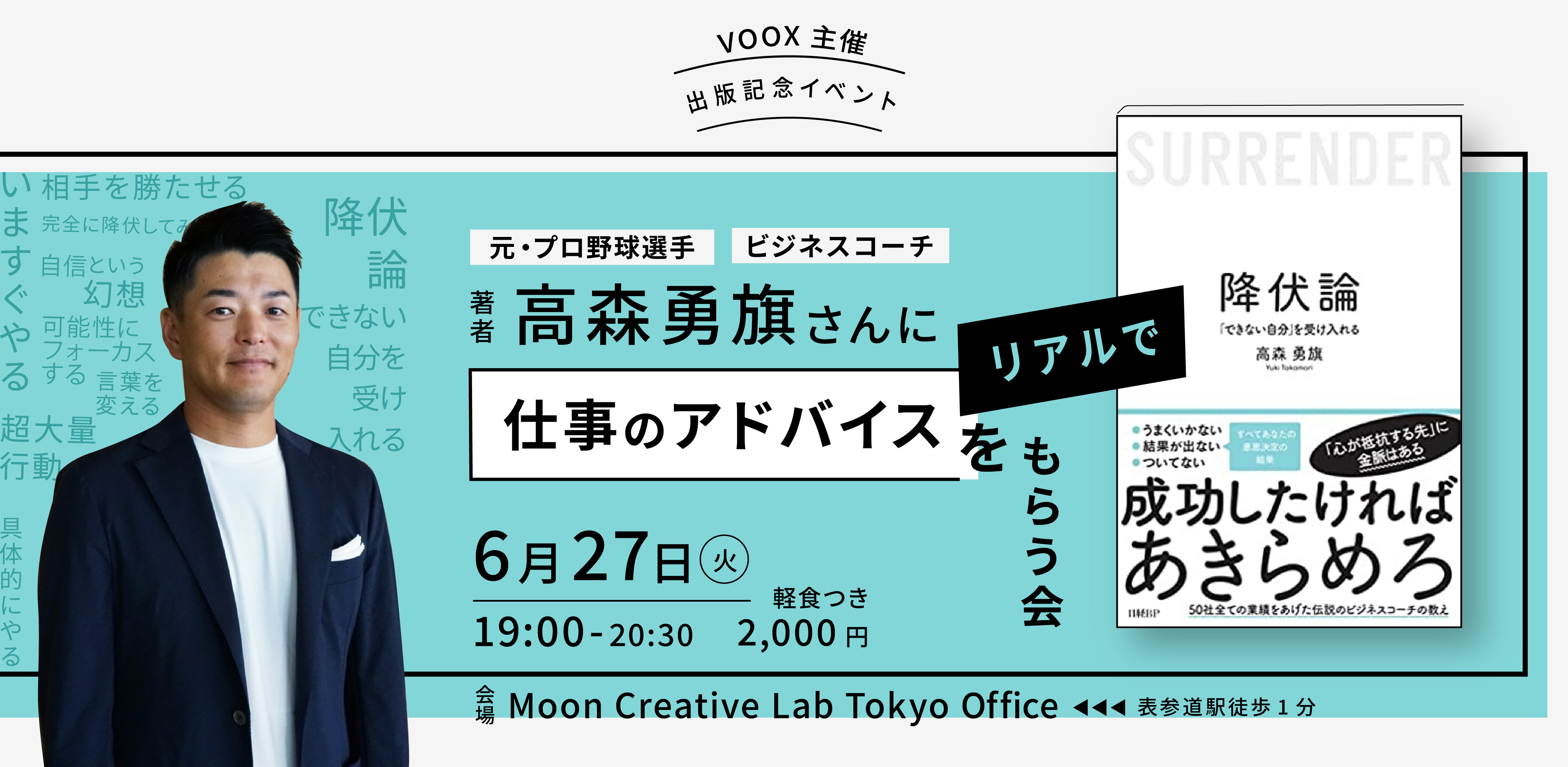 『降伏論』出版記念イベント★著者であり元プロ野球選手・ビジネスコーチの高森勇旗さんに 「リアル」で仕事のアドバイスをしてもらう会