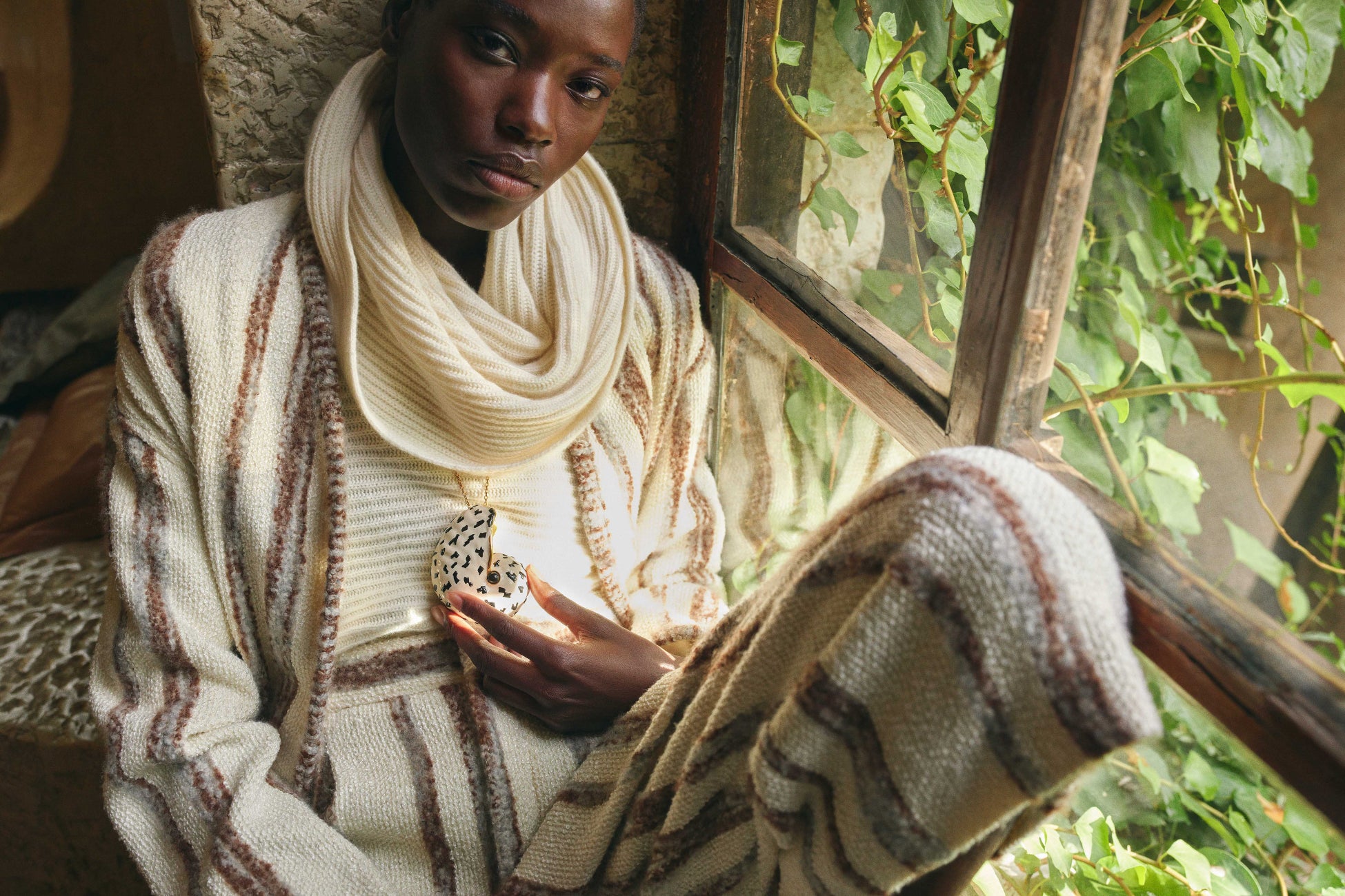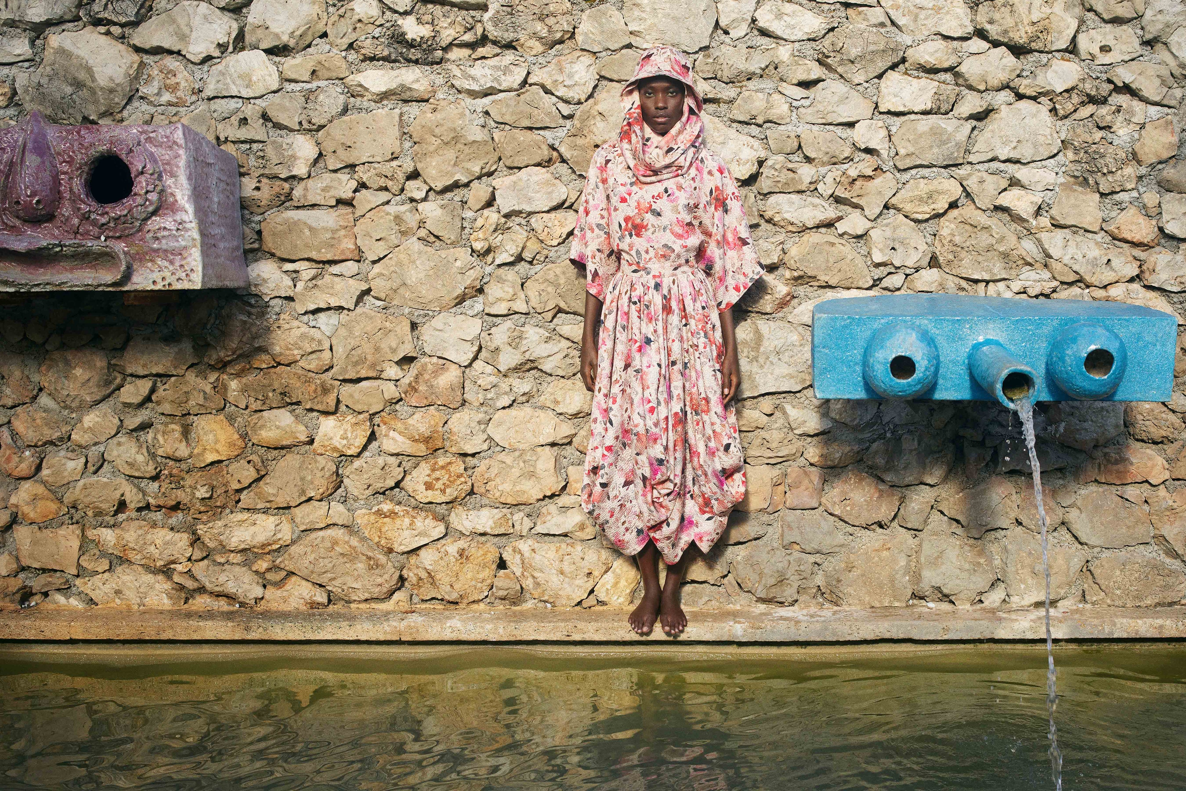 柔らかく流れるようなフォルムと、色彩と素材が豊かに融合するコレクションの自由なエレガンスは、石壁や鮮やかなタイル、温かみのある室内、そして地中海の緑豊かな風景を見渡す大きな窓から差し込む光の中でとらえられ、この地域の豊かな創造的表現のタペストリーに新たな彩りを添えています。それは芸術家たちがくつろぎ、インスピレーションが生まれ、美を共有する場、サン・ポール・ド・ヴァンスの精神を体現しています。