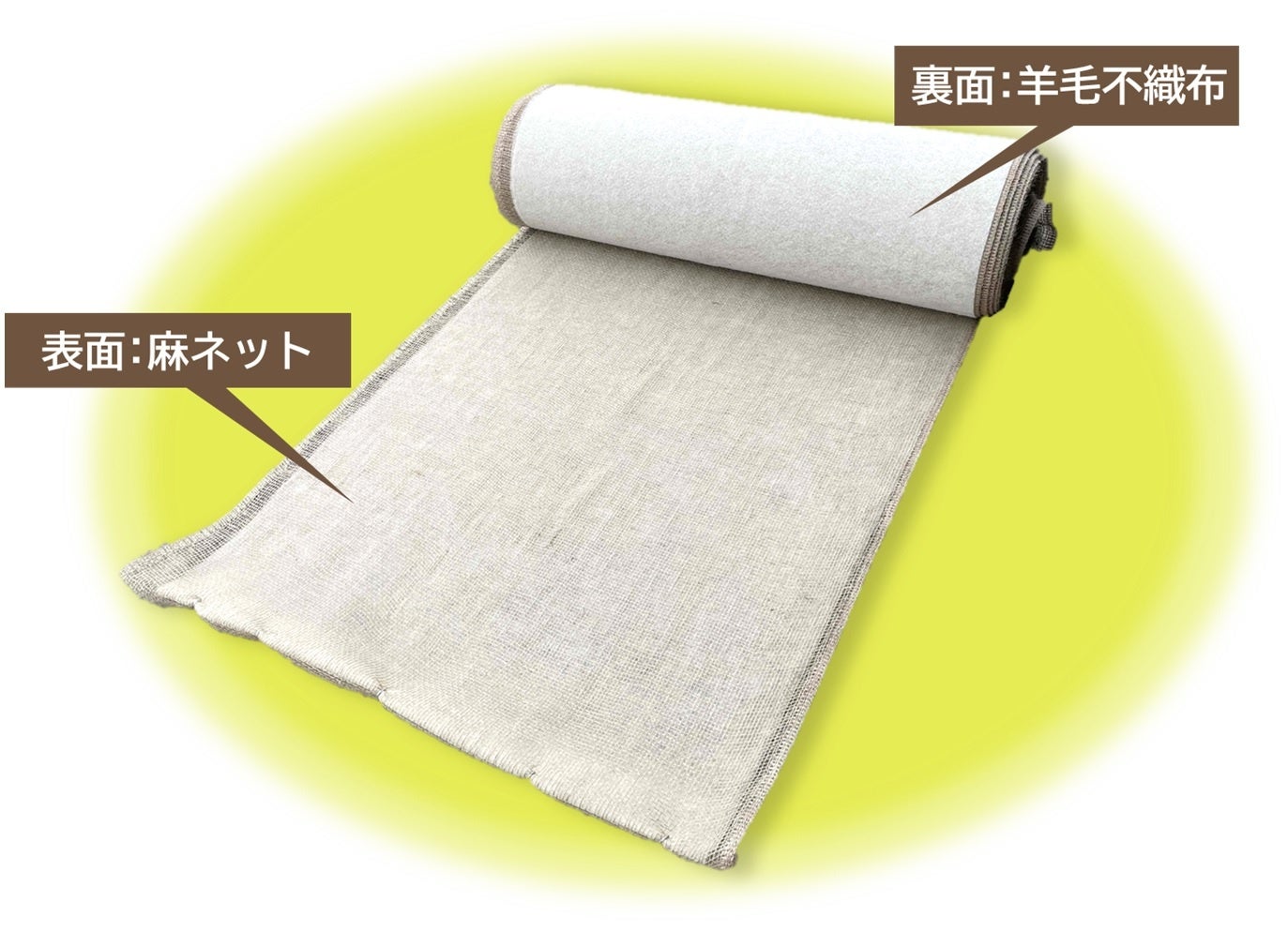 エコシープは、動物性の羊毛不織布と植物性の麻ネットでできており、全ての素材が生分解性の環境配慮型資材です。