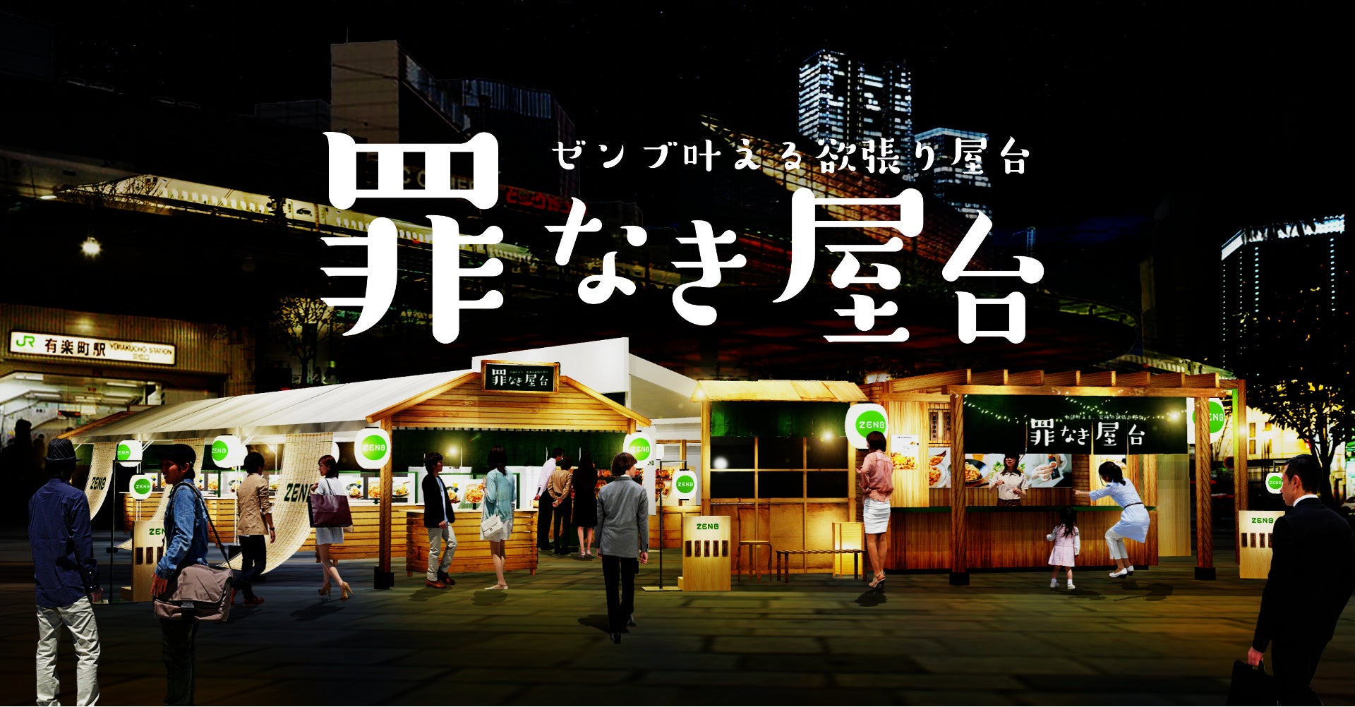 「罪なき屋台」は、豆や野菜をまるごと使った「ZENB」を通じて、「食に対する我慢」から皆さまを解放したい、そんな想いから生まれた屋台です。忙しく栄養を気にかける余裕のない方、糖質制限中の方、環境のことを考えるからこそ、食事の選択肢に制限を感じてしまう方。「罪なき屋台」は、日頃「頑張る人々」を、朝昼晩すべてのシチュエーションにおいて、罪悪感無く、やさしく、おいしく満たします。そんな至福のひとときを提供する特別なメニューをご用意し、皆様をお待ちしております。