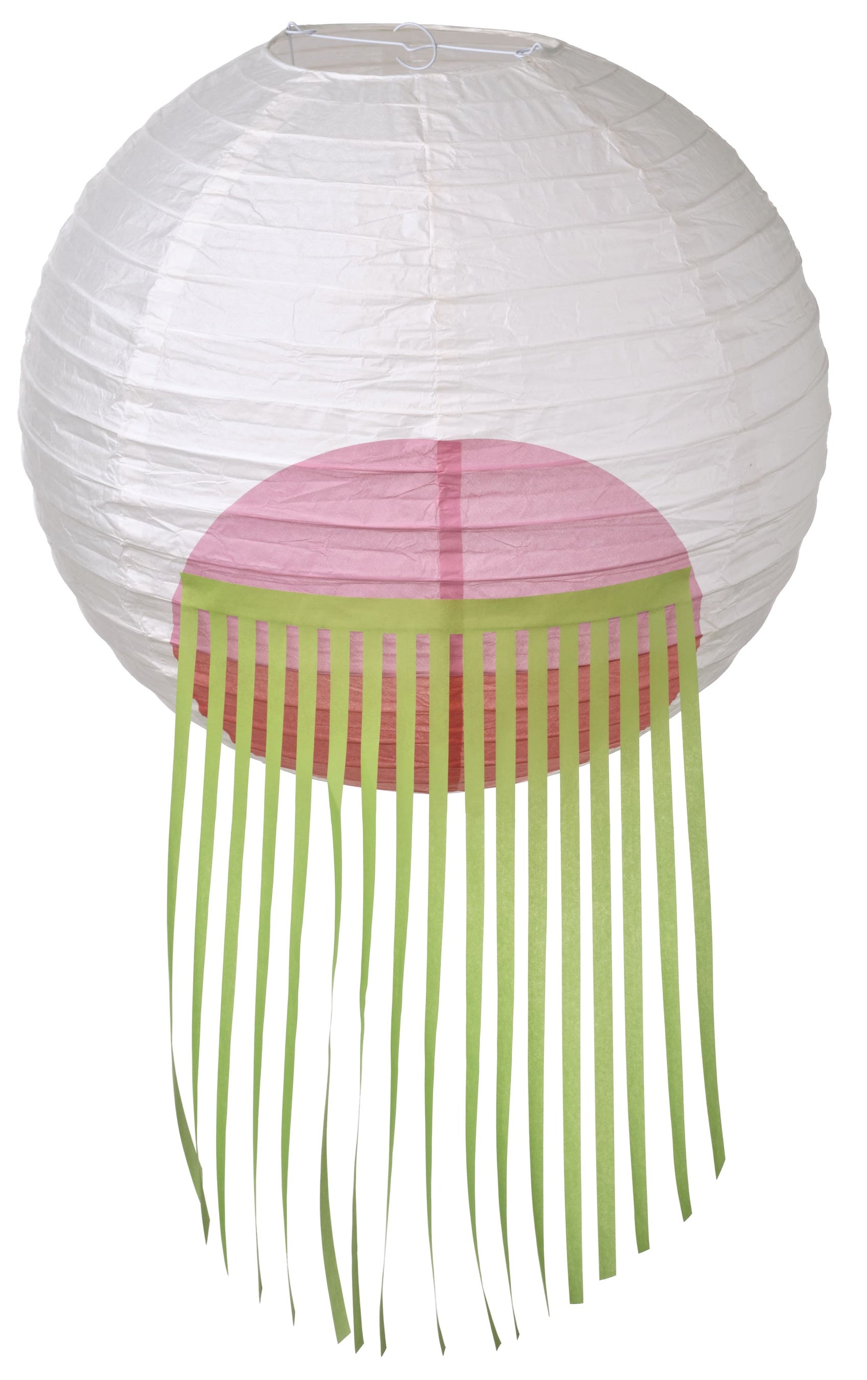 わら紙製のランプシェードが柔らかな光を広げ、心地いい雰囲気を演出します。 デザイナーのLiliana Ovalleが、パステルカラーのディテールと、それにマッチする目を引くフリンジで装飾を施しました。フリンジをつけずに使用することもできます。