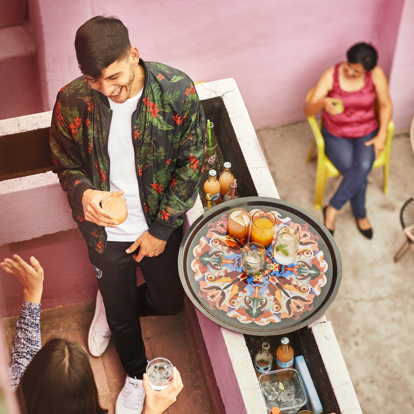 Diana Ordoñezがデザインした曲線的でカラフルな模様で、室内に生き生きとした躍動感をプラスしましょう。 紙をプレスしてつくったトレイは、料理やドリンクを運んでも、オーナメントとして棚に飾ってもステキです。大きめのサイズなので、一度にたくさん運んで大勢の人に料理や飲み物を出せます。縁に角度を付けてトレイに手を掛けやすくしているので、持ち運びが簡単です。