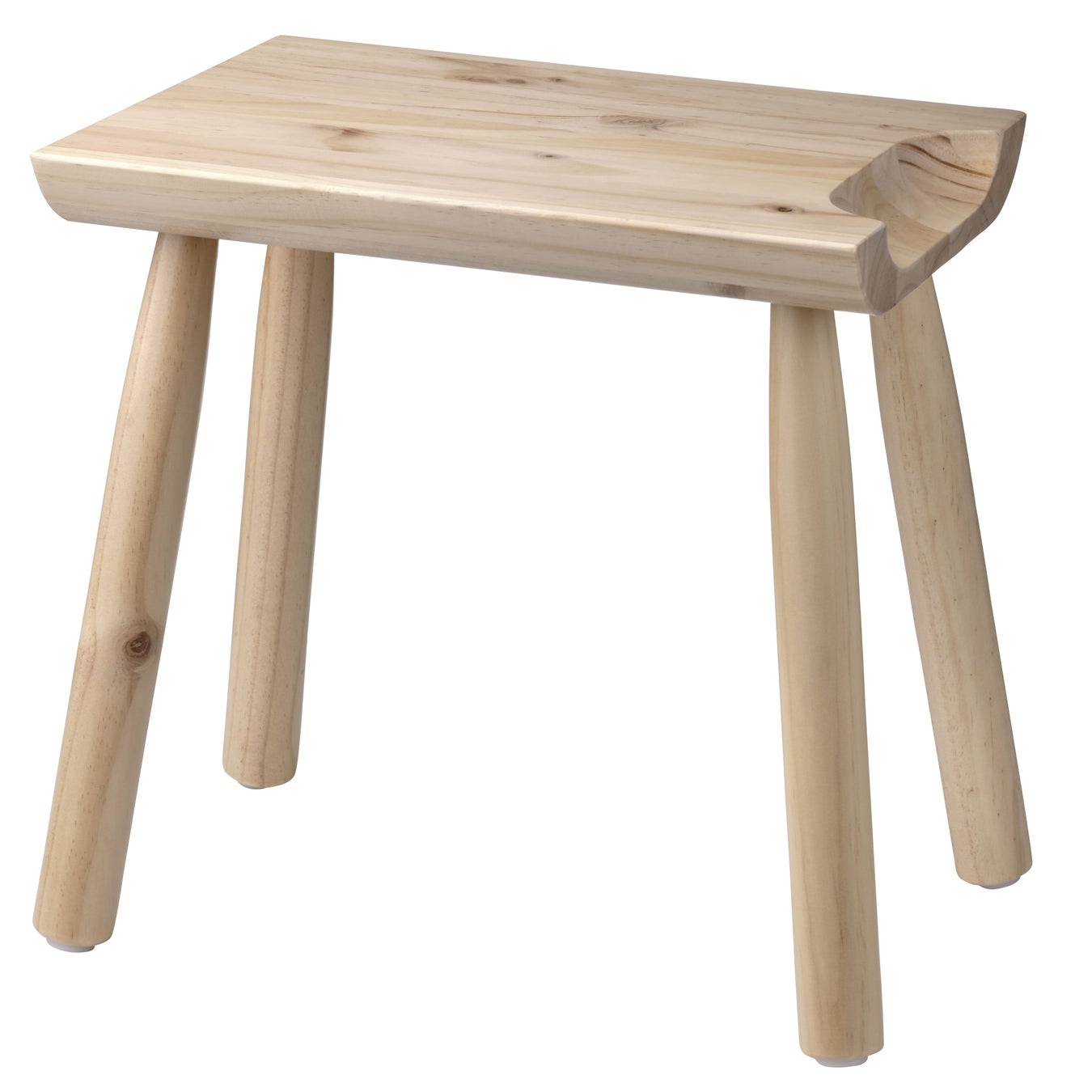 パイン無垢材製のやや低めのスツールは、Liliana Ovalleによるデザイン。短辺の片側をカットしたディテールが特徴です。 快適に座れるだけでなく、ベッドやパーソナルチェアの横に置いてサイドテーブルとしても使えます。