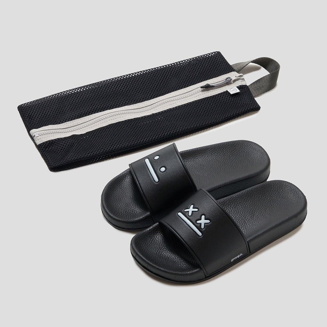 持ち運びに便利な持ち手付きのメッシュバッグ付属でレジャーシーンにはもちろん、オフィスでの履き替えや、ルームシューズとしてもおすすめ。