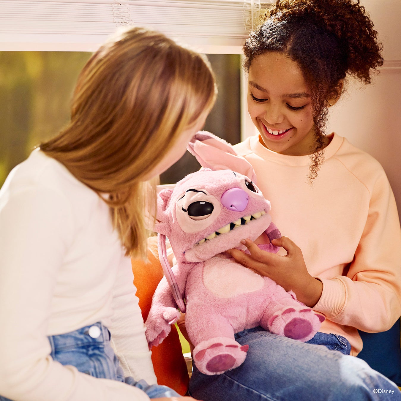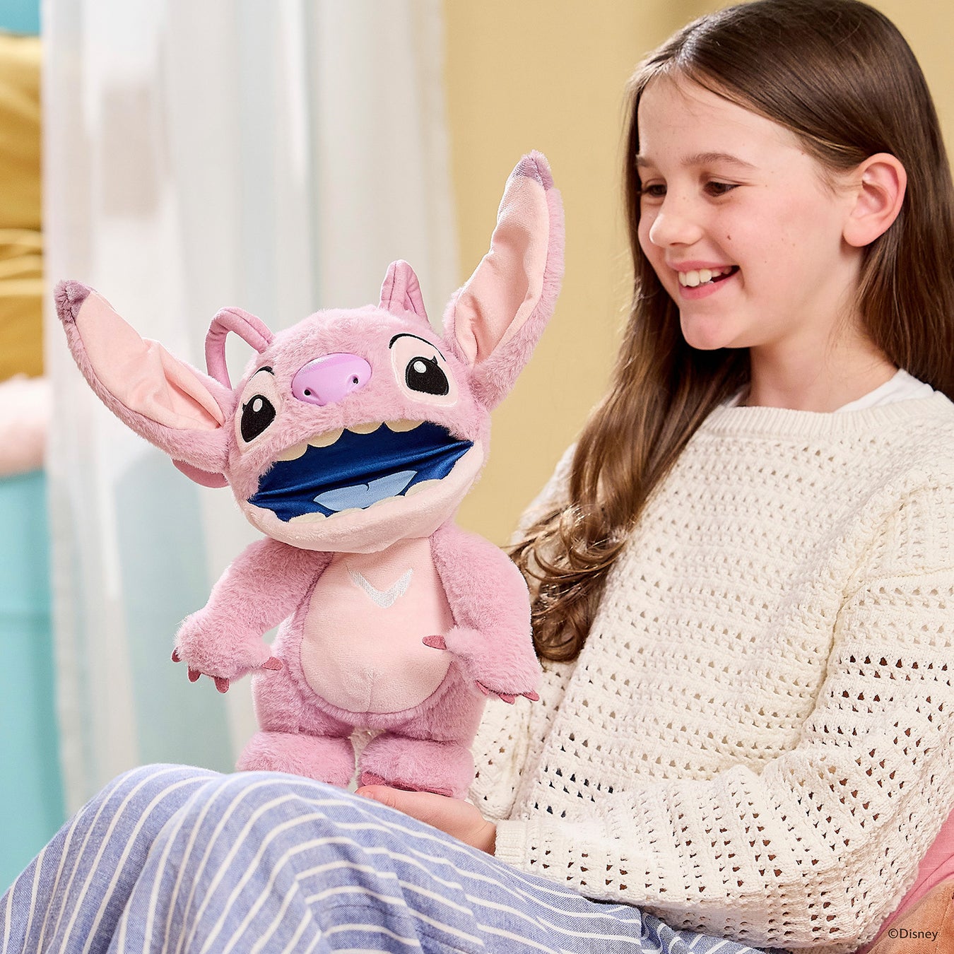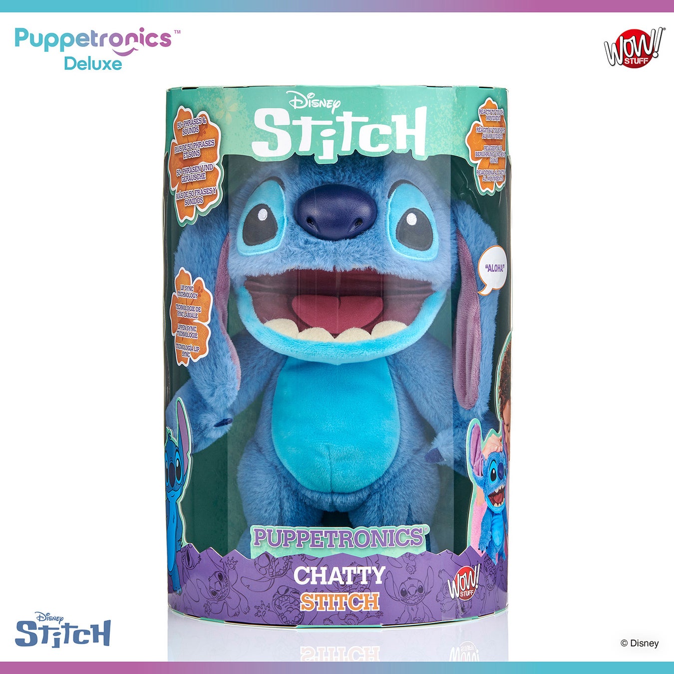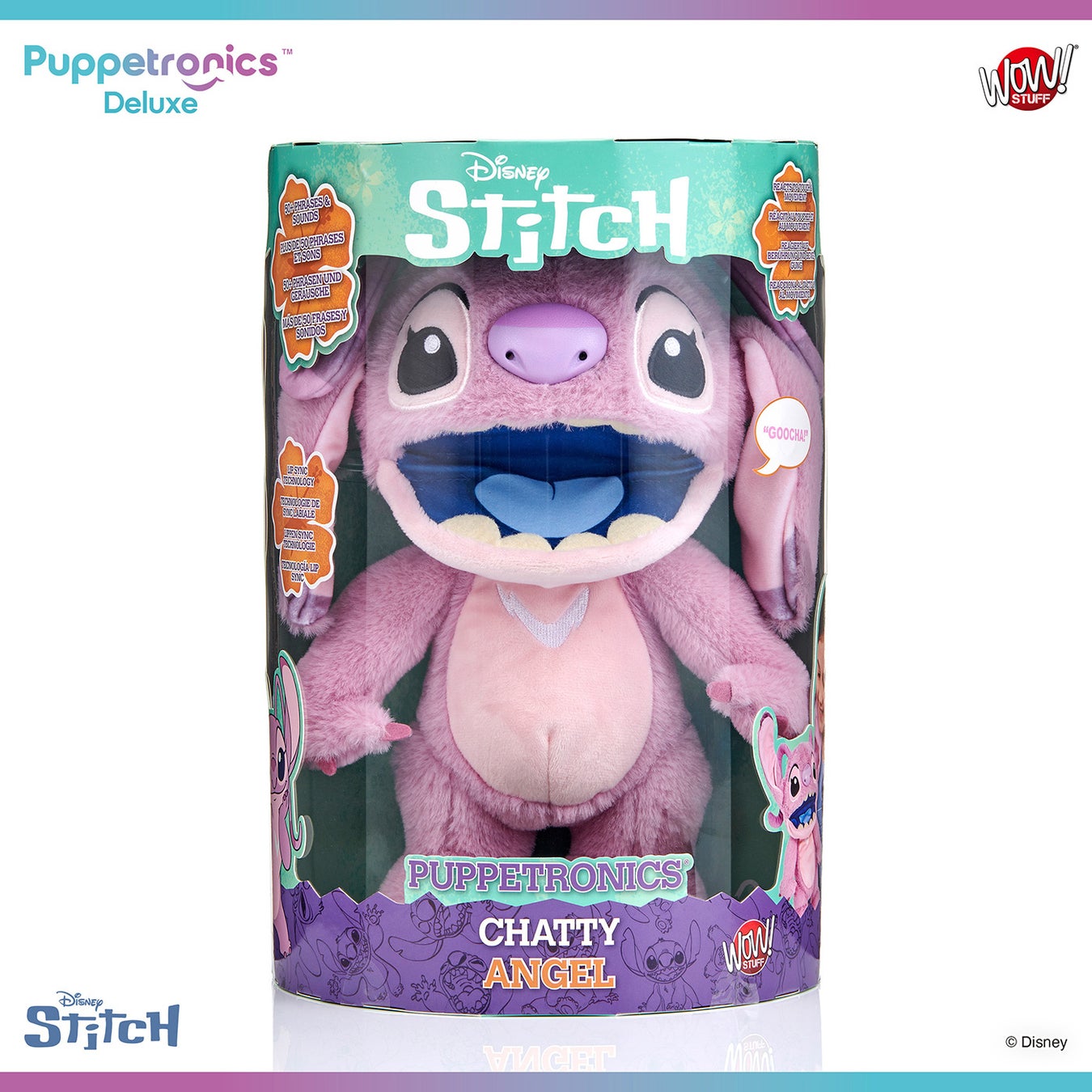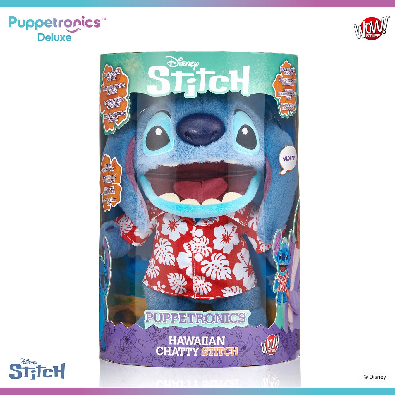 『リロ&スティッチ』シリーズのスティッチとエンジェルを、高さ約30cm、アニマトロニクス型のパペットとして立体化!頭の後ろから手を入れて口を動かしたり、額と鼻のタッチセンサーに触れたりすることで、サウンドとフレーズの組み合わせを50通り以上楽しむことができる。口の中のボタンを押すと、ハッピーモードと不機嫌モードを切り替えたり、おなじみのフレーズを発動することが可能。さらに、同シリーズのスティッチとエンジェルを近づけて遊ぶことで、お互いにおしゃべりさせることができる。ふわふわとした素材で、ぬいぐるみとして愛用できるのも嬉しいポイントだ!