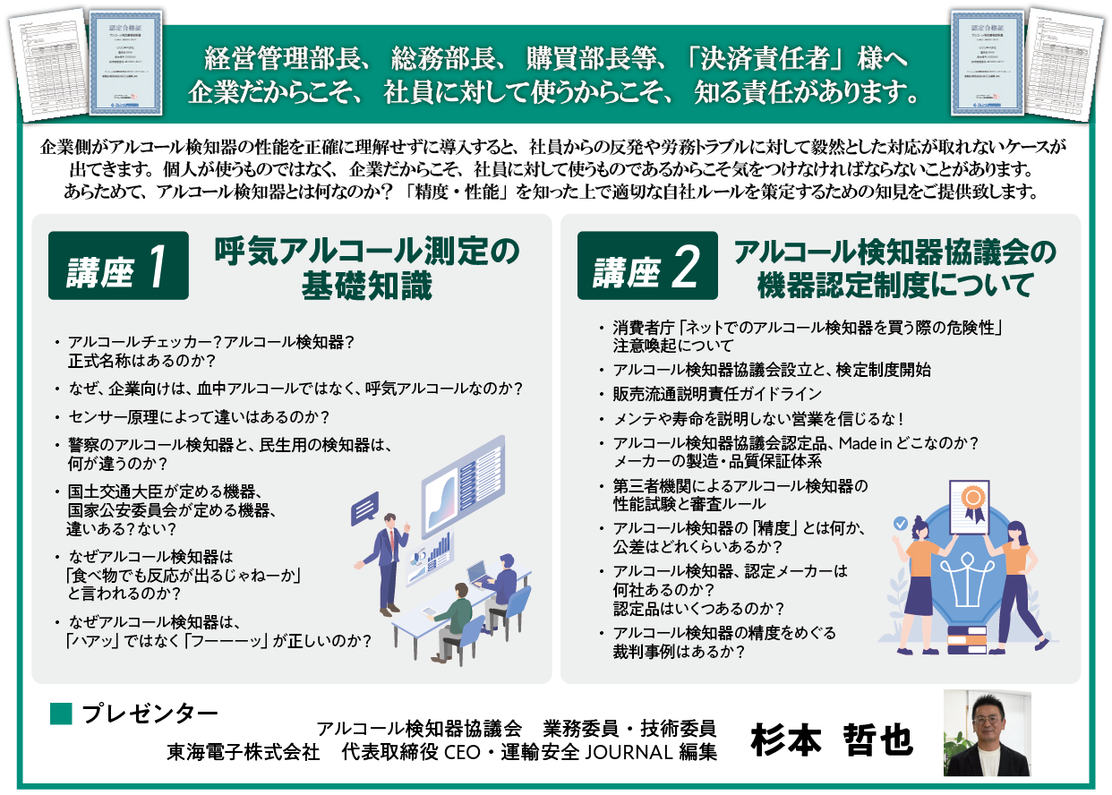 【 呼気アルコール検知器 概論 】セミナーを無料開催いたします。