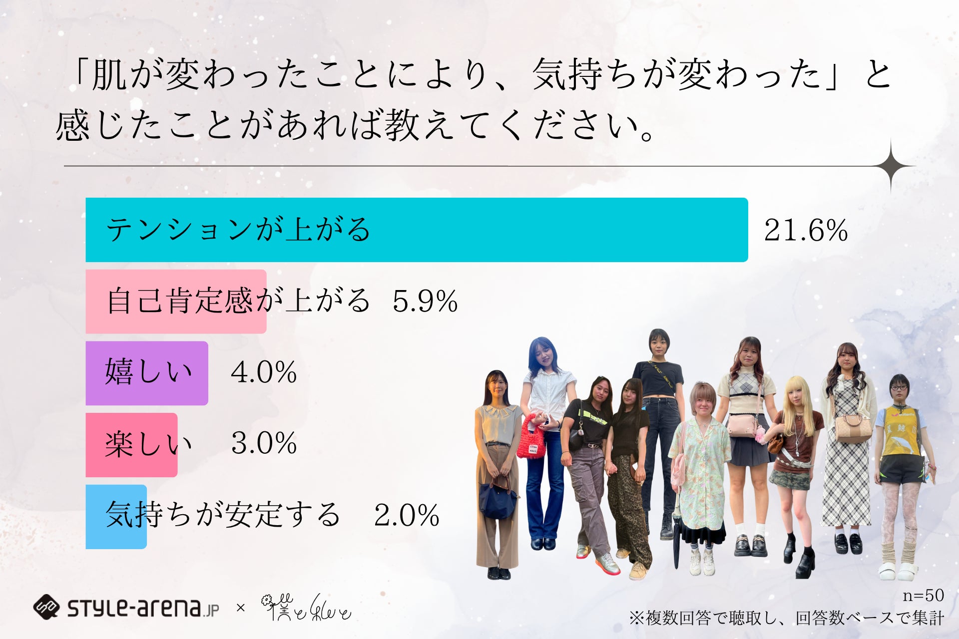 肌が整うことで、気分が上がる/自分に自信が持てる/気持ちが安定するといった、内面的な“ハッピー感情”の立ち上がりが確認されました。