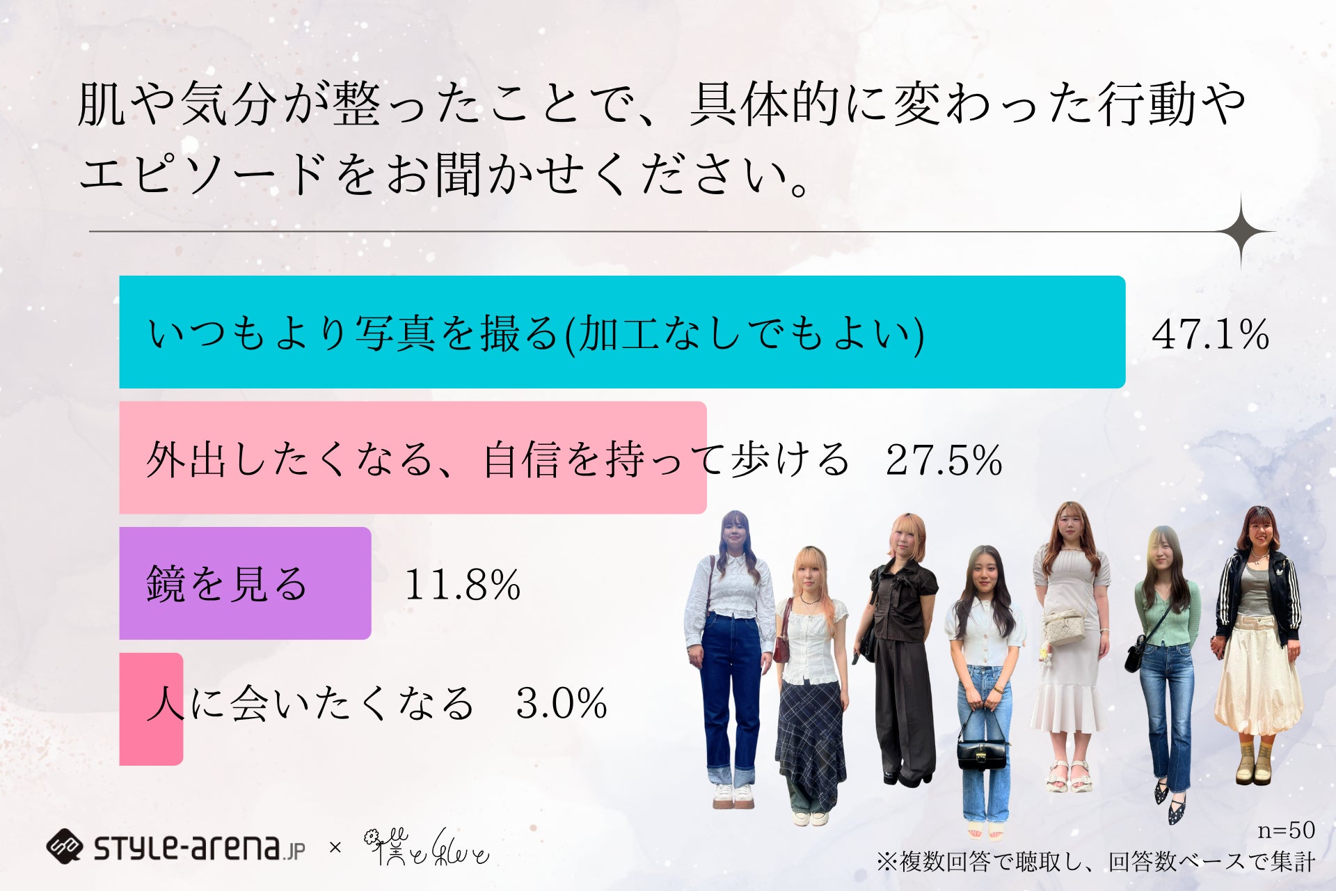 肌が整うことで、「誰かに会いたい」「記録したい」「発信したい」というポジティブな外向きの行動が自然に引き出されています。