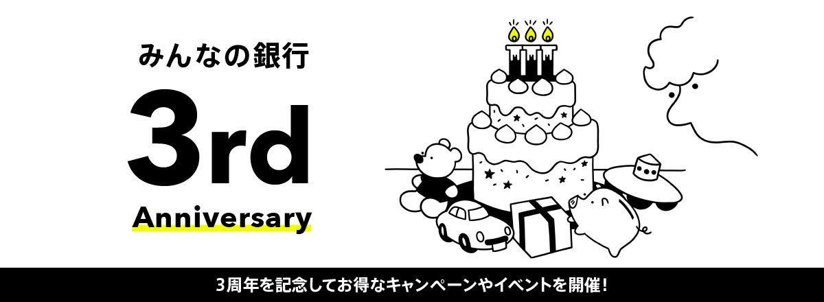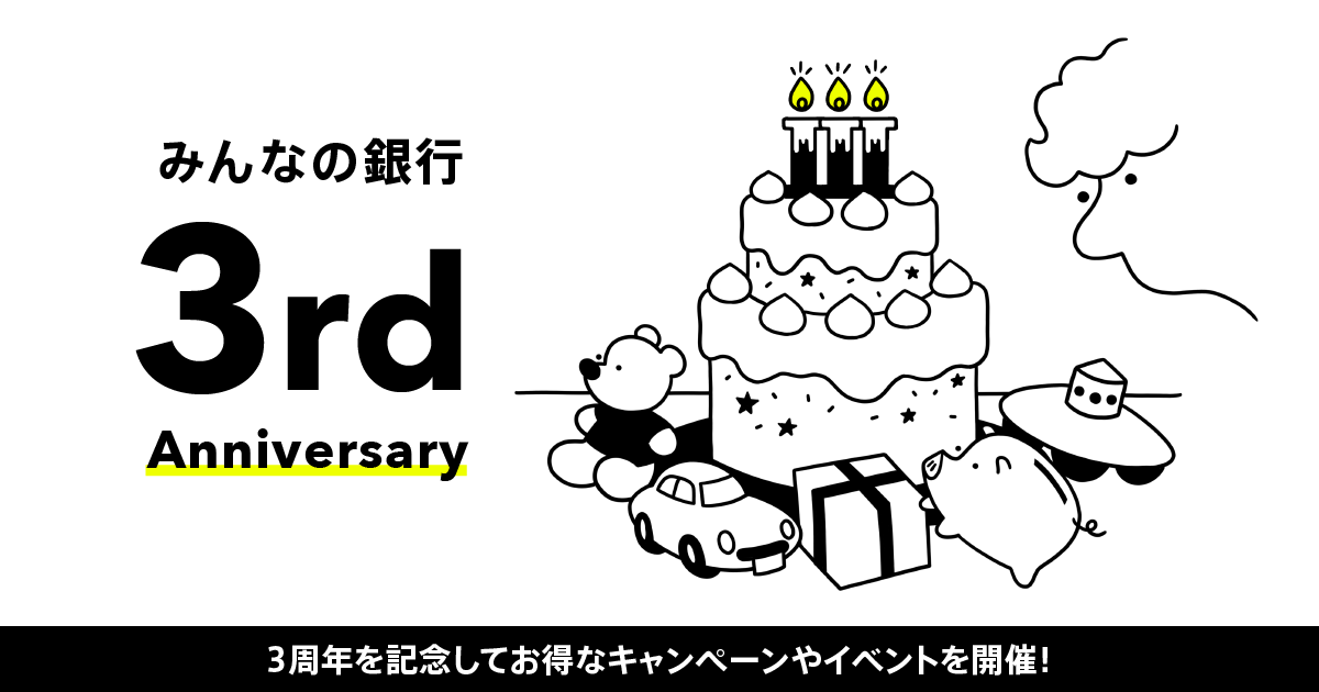 2024年5月28日でサービス提供開始3周年を迎えたみんなの銀行のこれまでを数字で振り返ります。