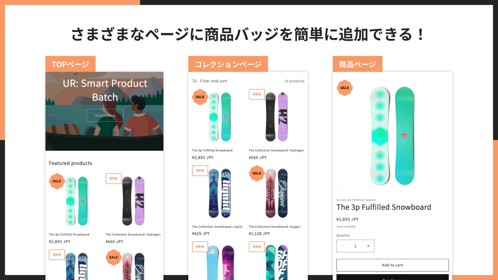 ■さまざまなページに商品バッジを簡単に追加できる!