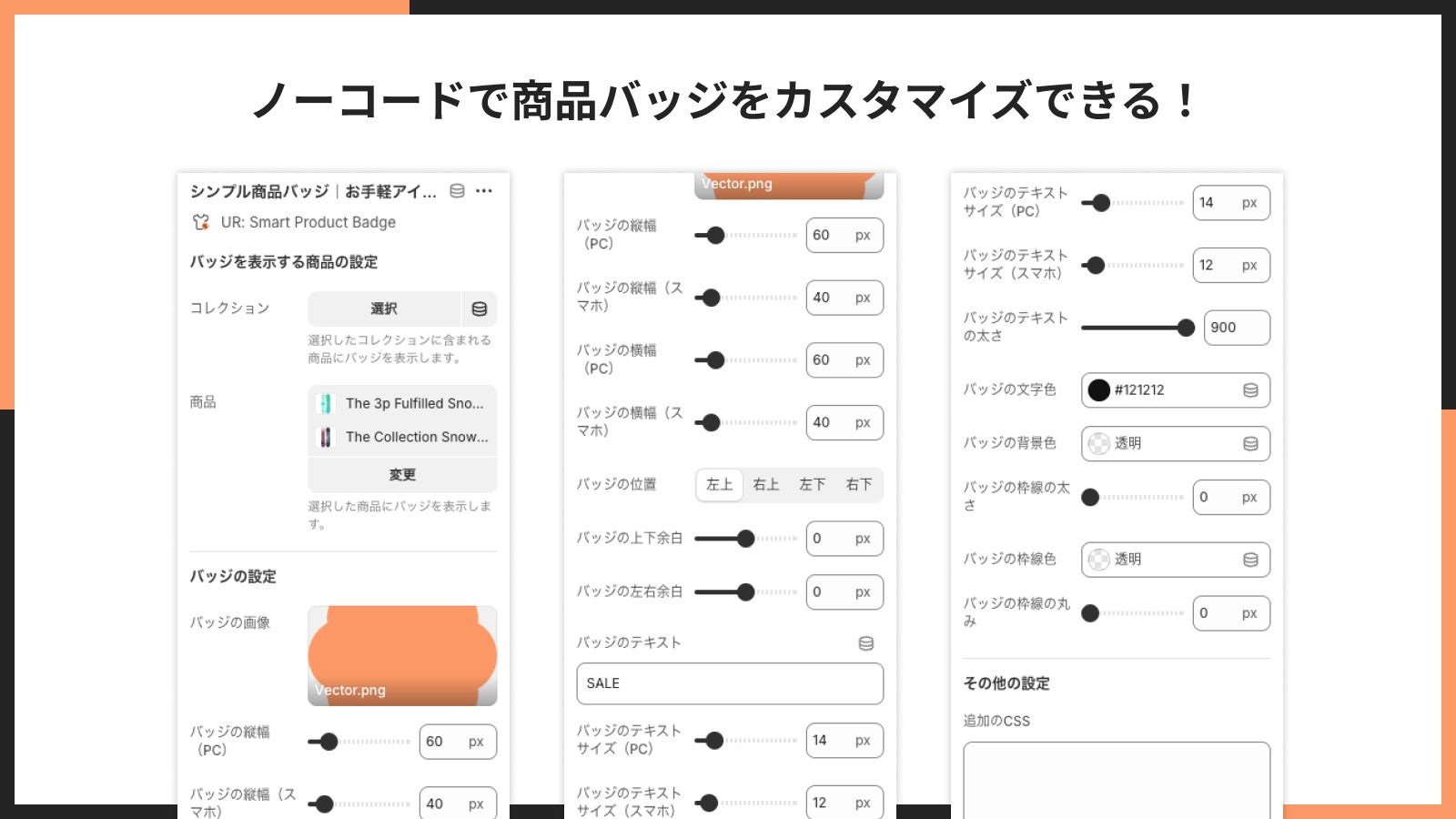 ■ノーコードで商品バッジをカスタマイズできる!