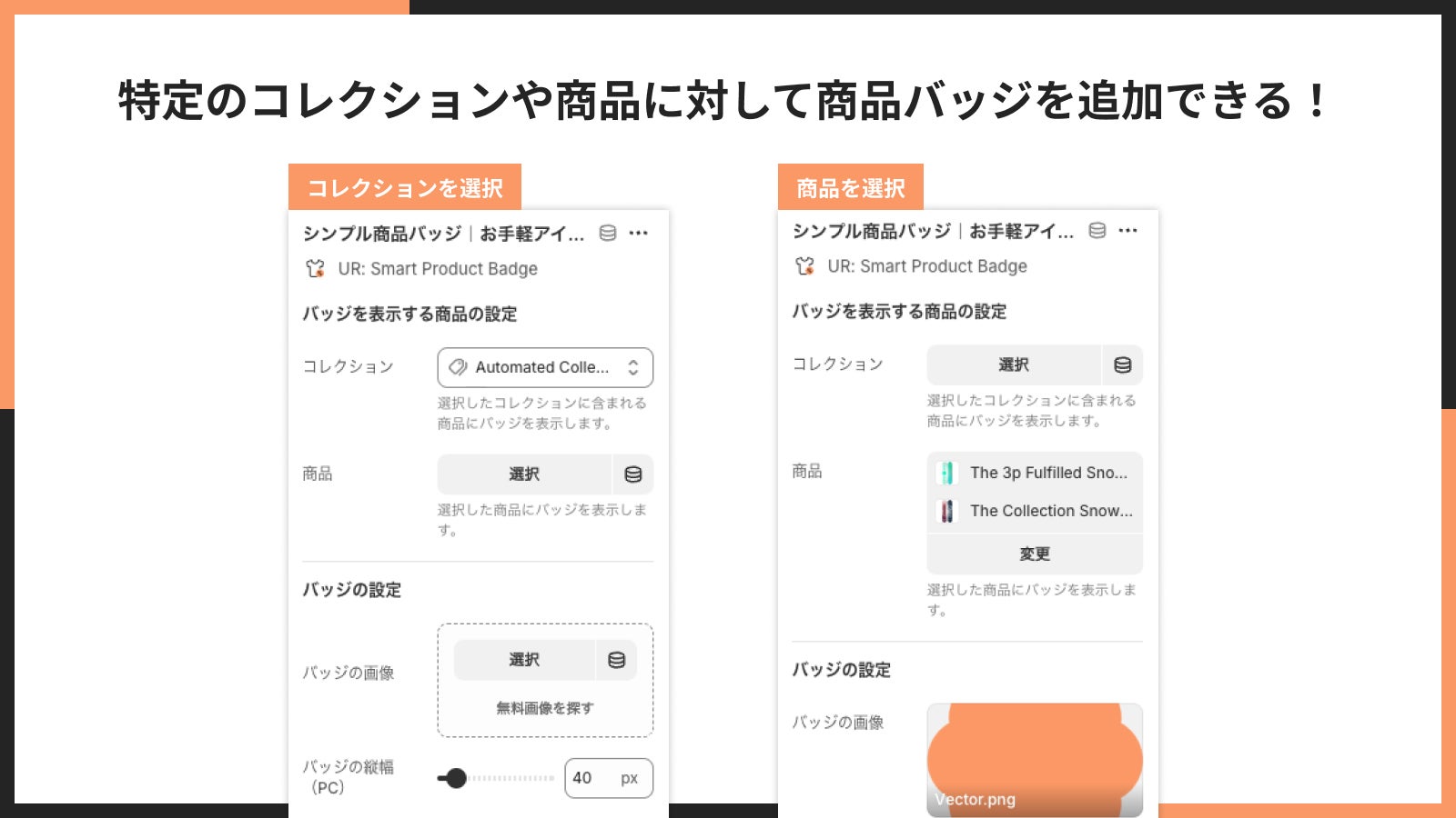 ■特定のコレクションや商品に対して商品バッジを追加できる!