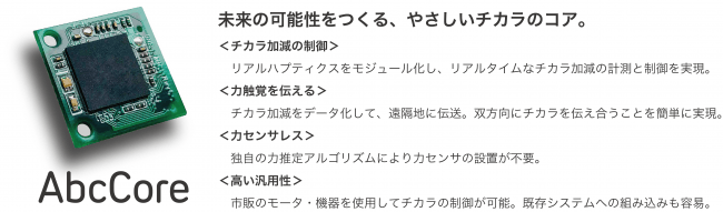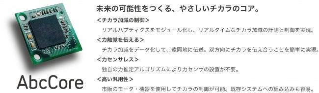 リアルハプティクスのアルゴリズムを制御ICチップ「AbcCore」に集約、誰でも簡単に扱えるようにしており、これまでに100プロジェクト以上の共同研究開発を実施し、2018年から続々と実用化がスタートしています。