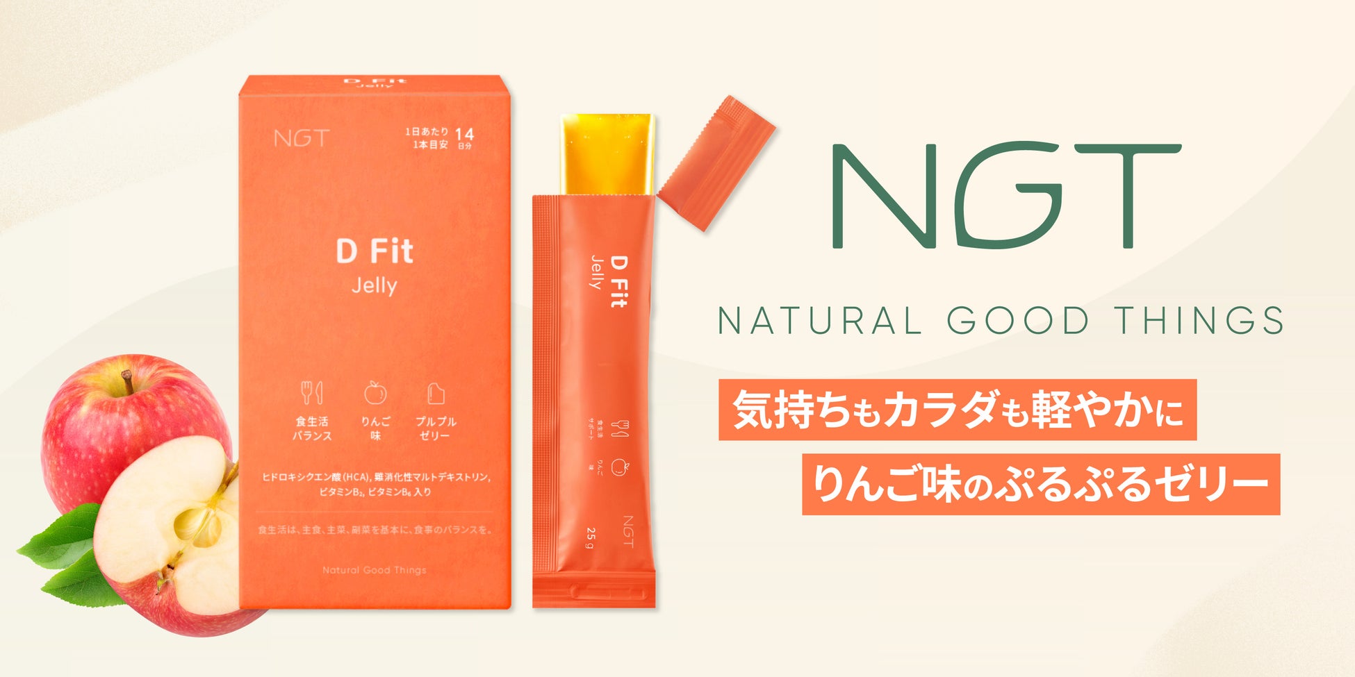 デザート代わりに最適な、りんご味のダイエットサポートゼリー「D Fit Jelly」を
