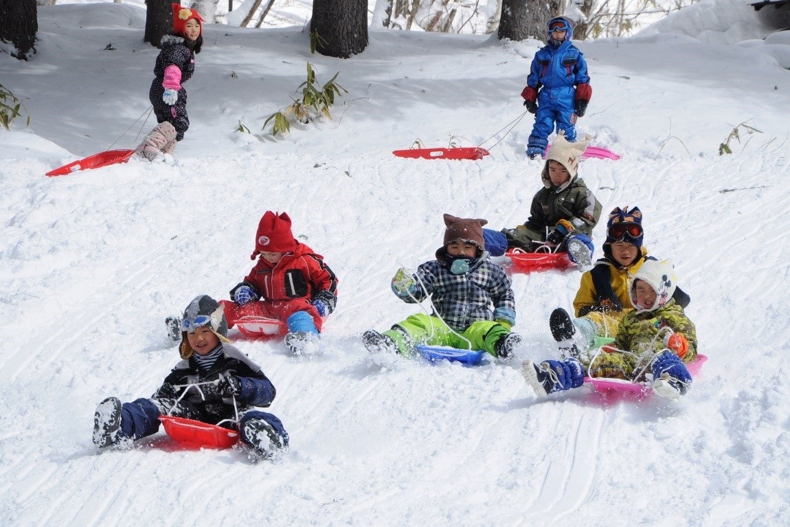 飯綱町に隣接する長野市北部、標高1,050mの飯綱高原にある私立の自然派幼稚園です。春は水芭蕉、夏にはホタルが飛び、秋の紅葉、そして冬は雪にすっぽりと包まれます。園庭には、自然のままの林や野原、沢があります。