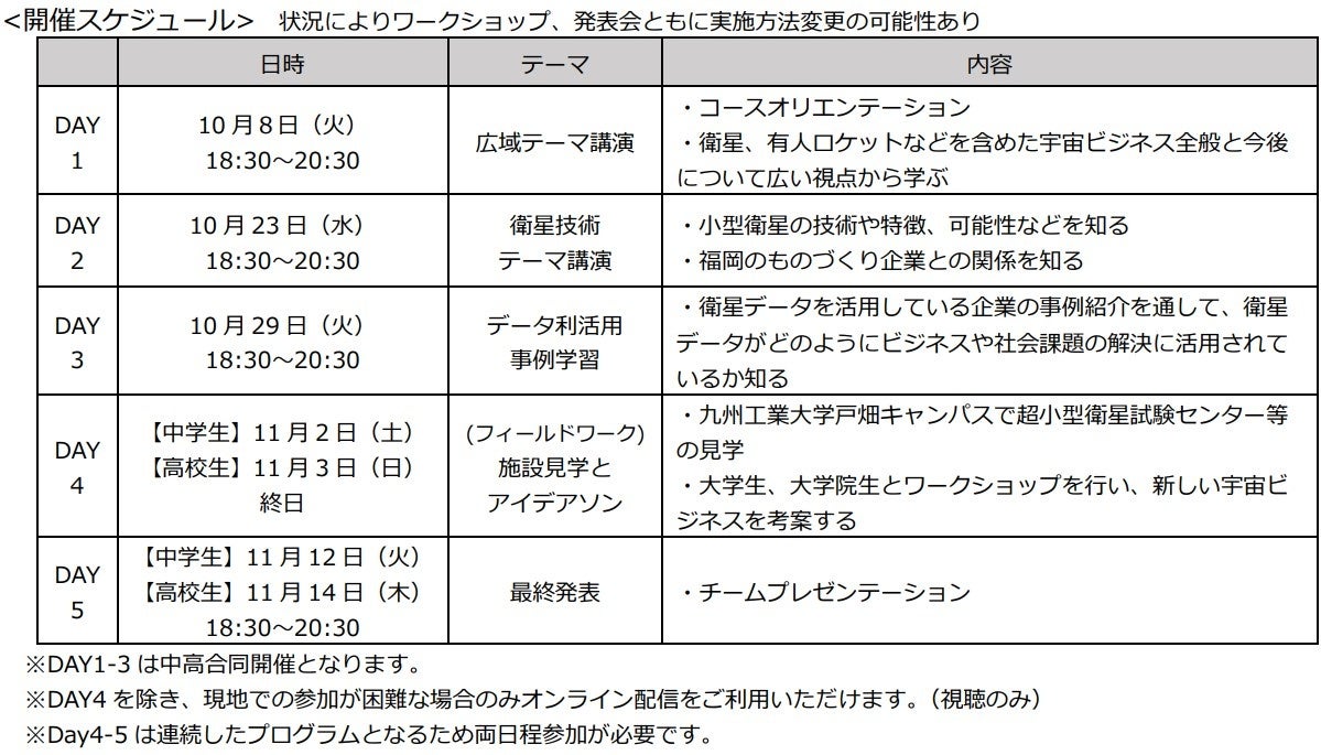 ・内 容:福岡県内にある宇宙関連企業の最前線で働く専門家や技術者から学び、進路について考えるきっかけづくりをサポートします。