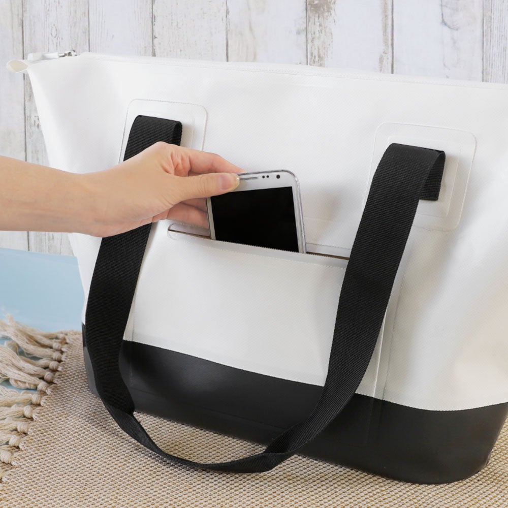 軽い雨などから手荷物を守る防水バッグです。山や海などのアクティビティ、釣りやゴルフなどの野外スポーツはもちろん、ジムやサウナ・温泉など濡れた荷物入れとしても活躍します。