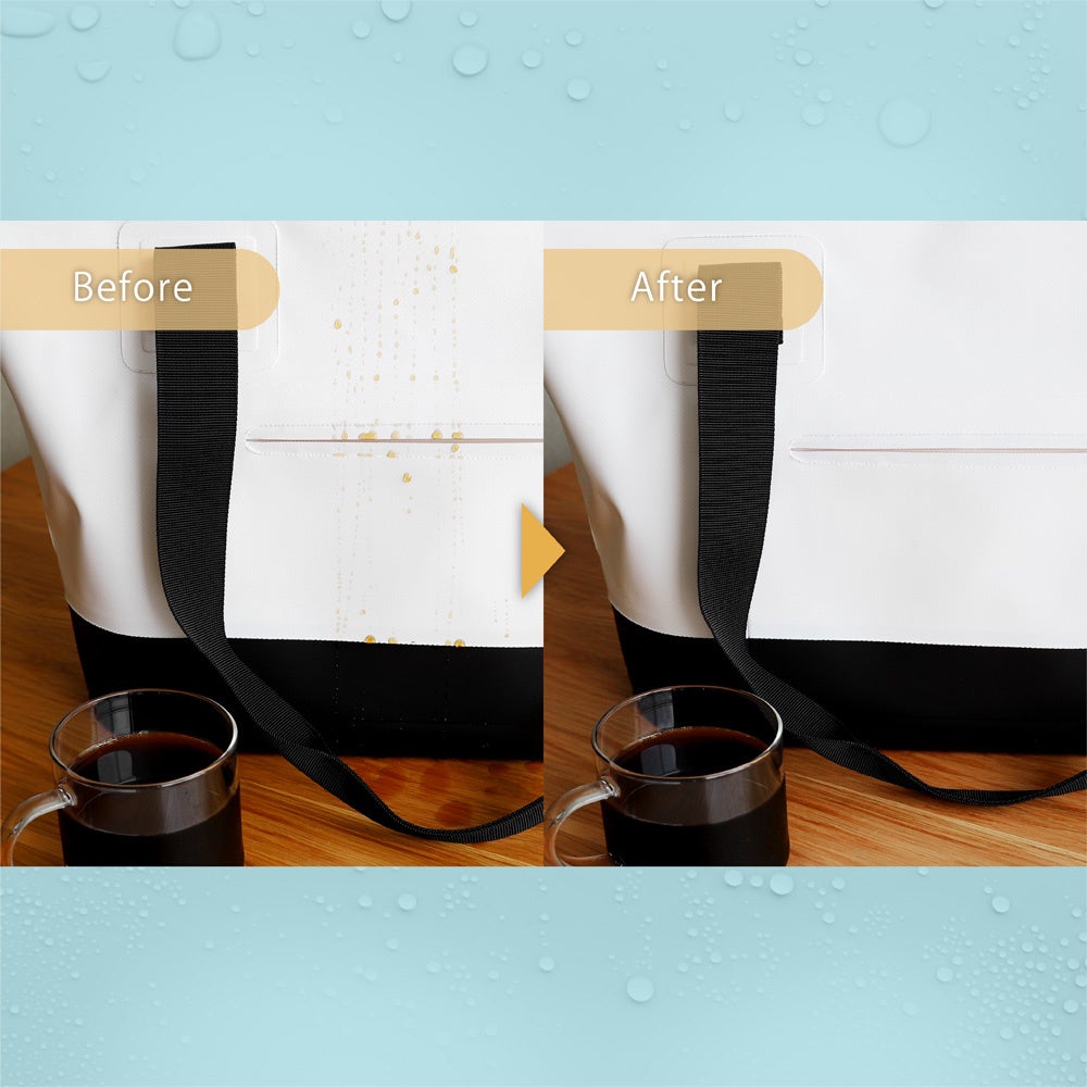 防水性と耐久性の高いPVC(ポリ塩化ビニル)素材を採用しております。軽い汚れや少し濡れただけであればさっと拭き取ることができます。