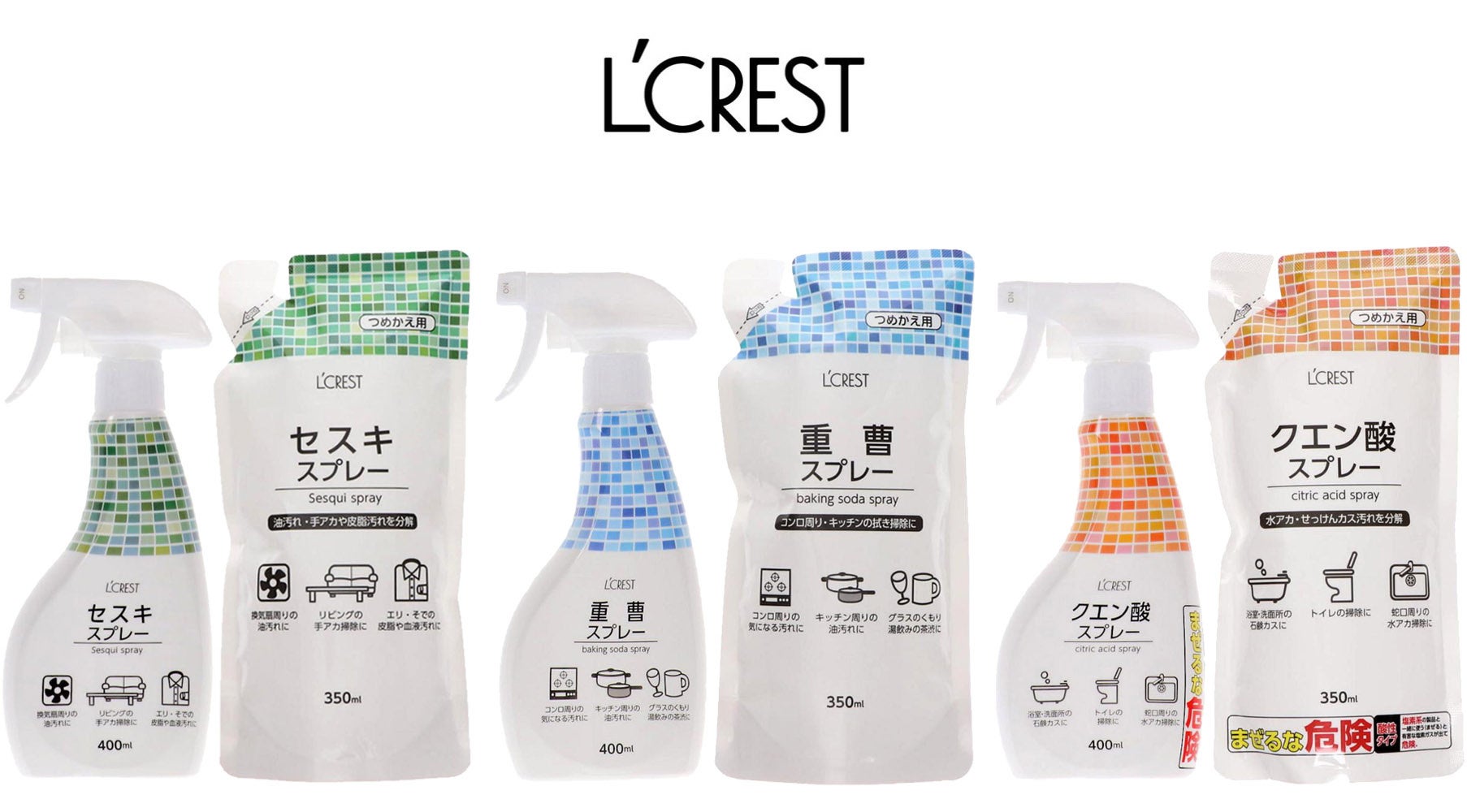 自然由来の洗浄成分で手肌にも環境にもやさしいコメリのオリジナルブランド「L’CREST」から「セスキ炭酸ソーダ・重曹・クエン酸成分入りスプレー」がリニューアル