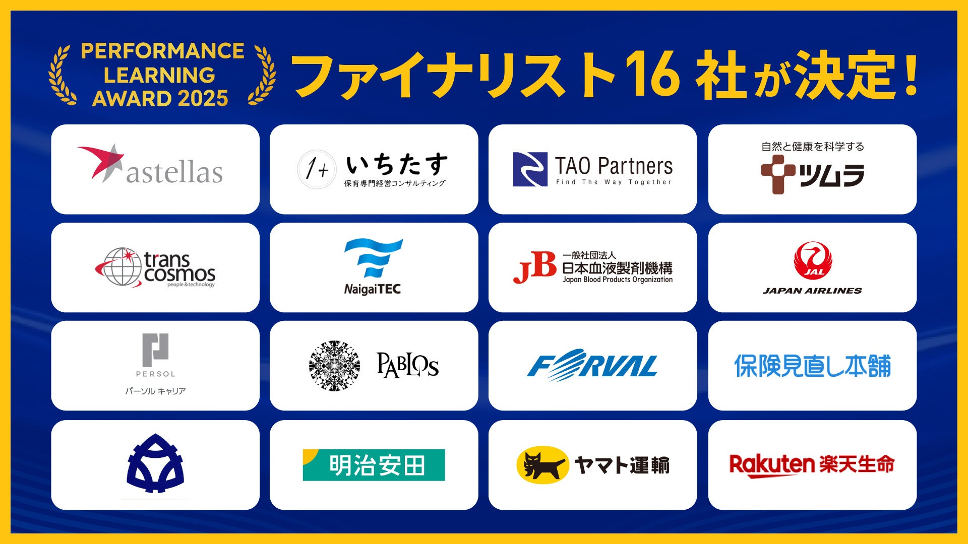「Performance Learning Award 2025」JAL、ヤマト運輸、明治安田生命など、業界をリードする企業が名を連ねるファイナリスト16社が決定!