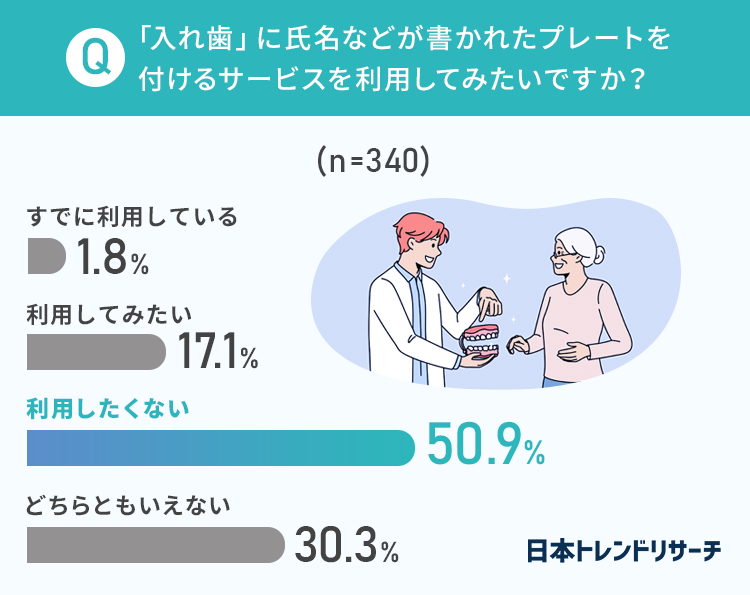 ■「入れ歯」への名入れサービス、50.9%が「利用したくない」