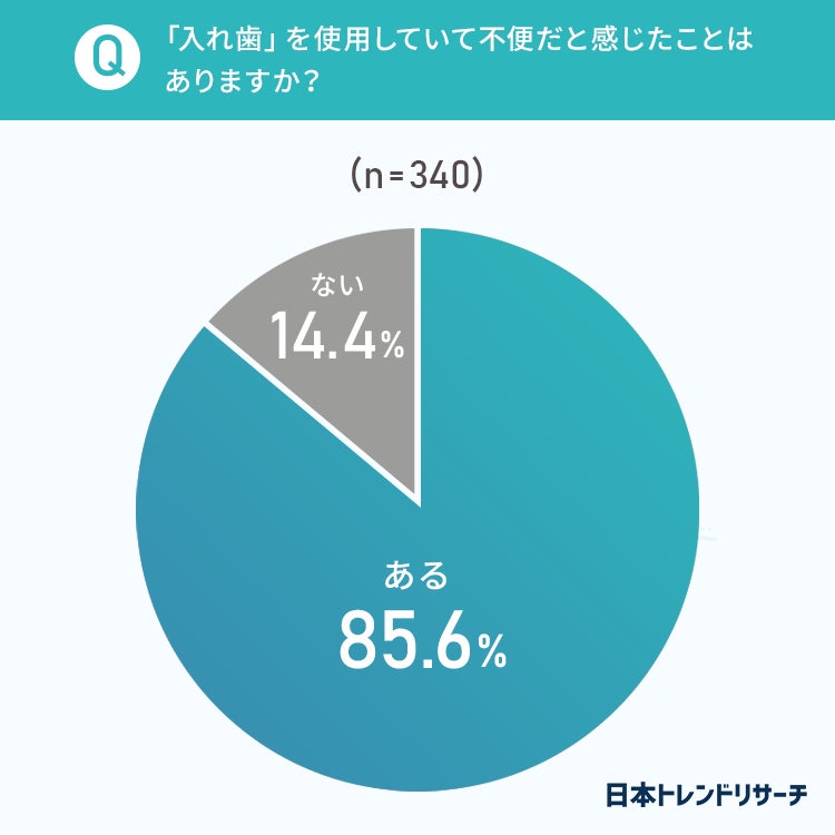 入れ歯を使っている方の85.6%が、入れ歯を使用していて不便だと感じたことが「ある」