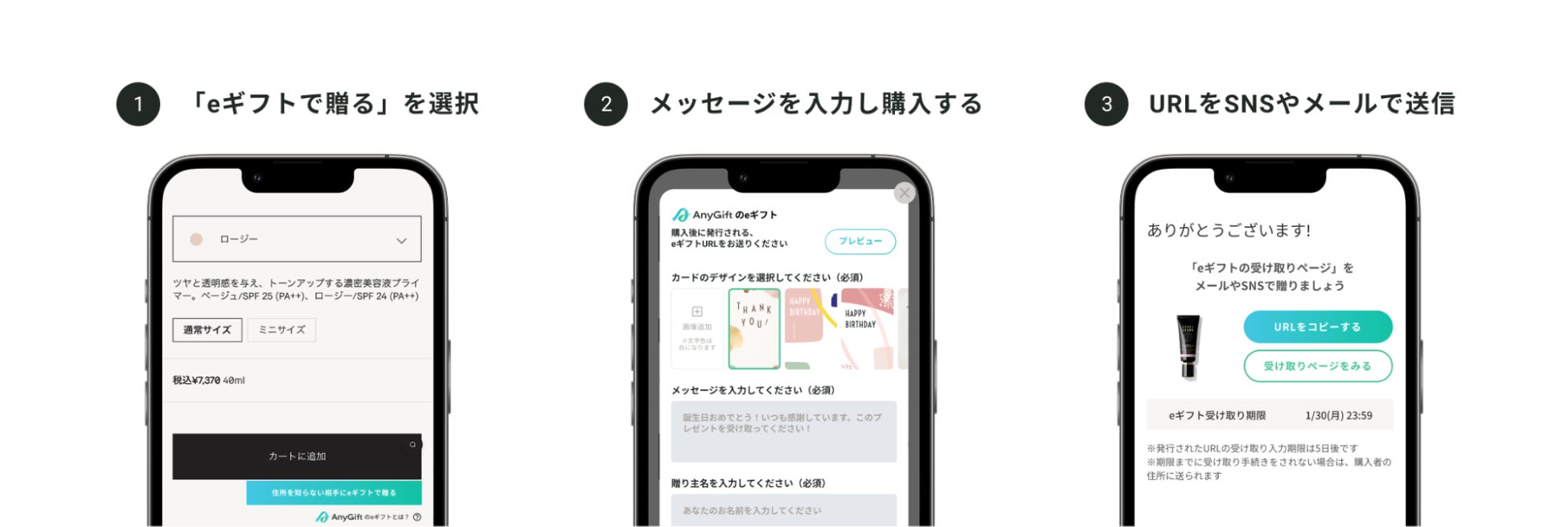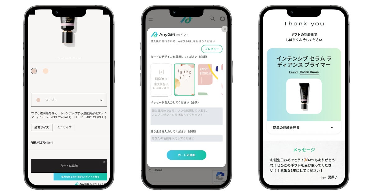 こうした状況から、同社はこのたび「AnyGift」を導入されました。住所を知らなくても贈ることができるeギフトサービスを活用することで、より気軽に「ボビイ ブラウン」の製品をギフトとして利用できる環境が整いました。今回の取り組みにより、「大切な人へ、特別な体験を届けたい」というお客様の思いを実現しつつ、さらに多くの方々に製品が届く機会が広がることが期待されます。