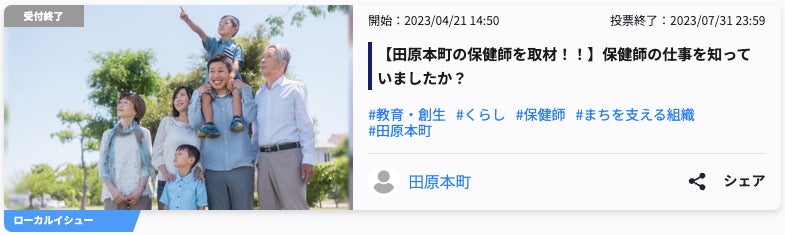 このイシューは、Surfvoteローカルに参加している奈良県田原本町の保健師を弊社が取材し、それをもとに作成されました。https://surfvote.com/issues/9dxo5eydnbao