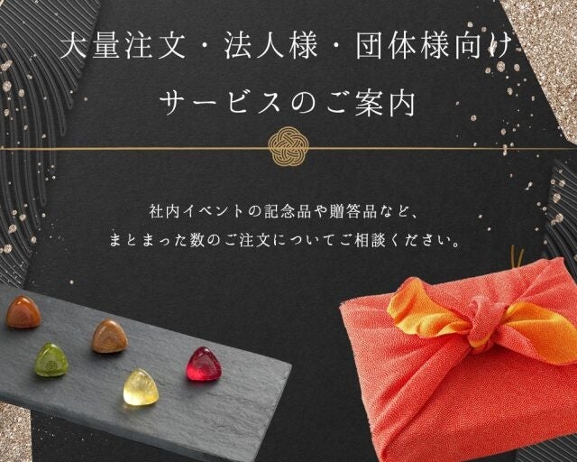 おめでたい亀甲形の飴やお赤飯、お祝いに好適な紅白饅頭、風呂敷が2種類からお選びいただけるオンラインストア限定のギフトセットなどをご用意しております。