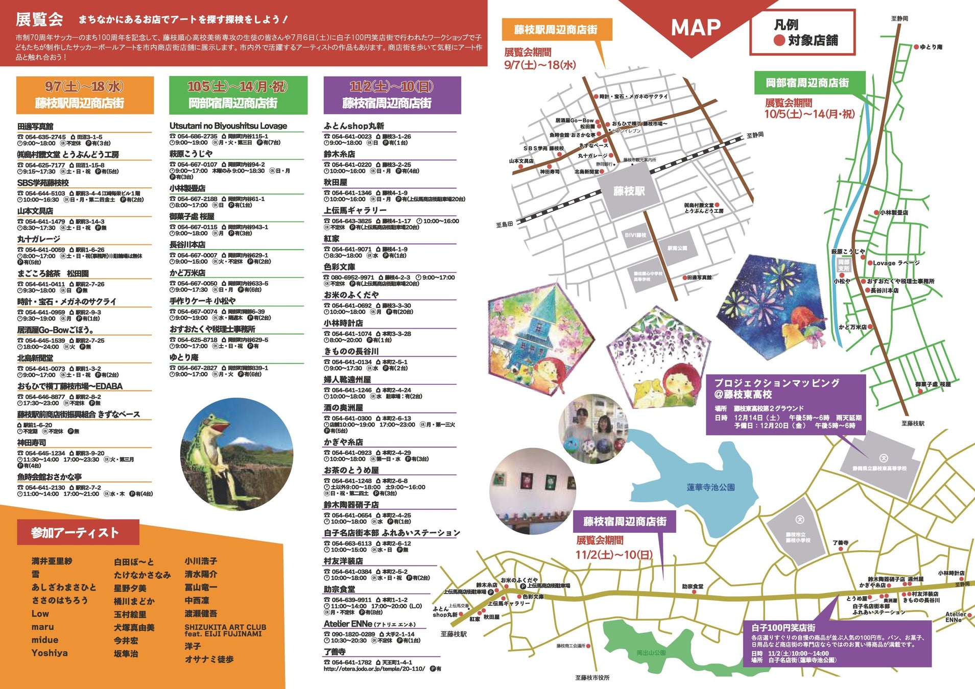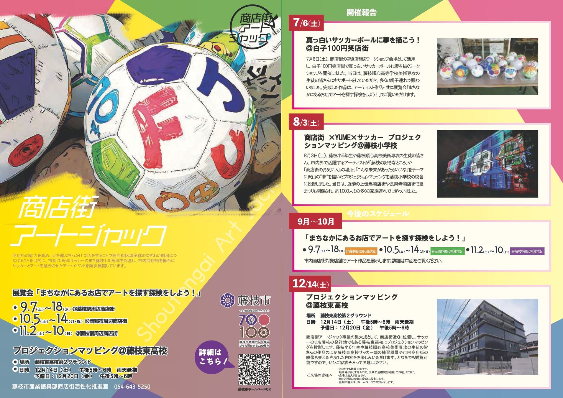 内 容:藤枝順心高校美術専攻の生徒の皆さんや7月の白子100円笑店街ワークショップで子どもたちが制作したサッカーボールアートや、市内外で活躍するアーティストの作品を商店街店舗などに展示します。
