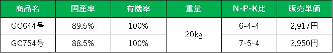国産率100%の肥料に加え、可能な限り国産原料を用いた有機100%の肥料も以下の通り、発売します。「有機肥料」とは、植物性または動物性の有機物を原料とした肥料のことです. 鉱物などの無機物を原料とした化学肥料とは異なり、微生物の働きによって徐々に養分が分解され、土壌改良効果も期待できます。