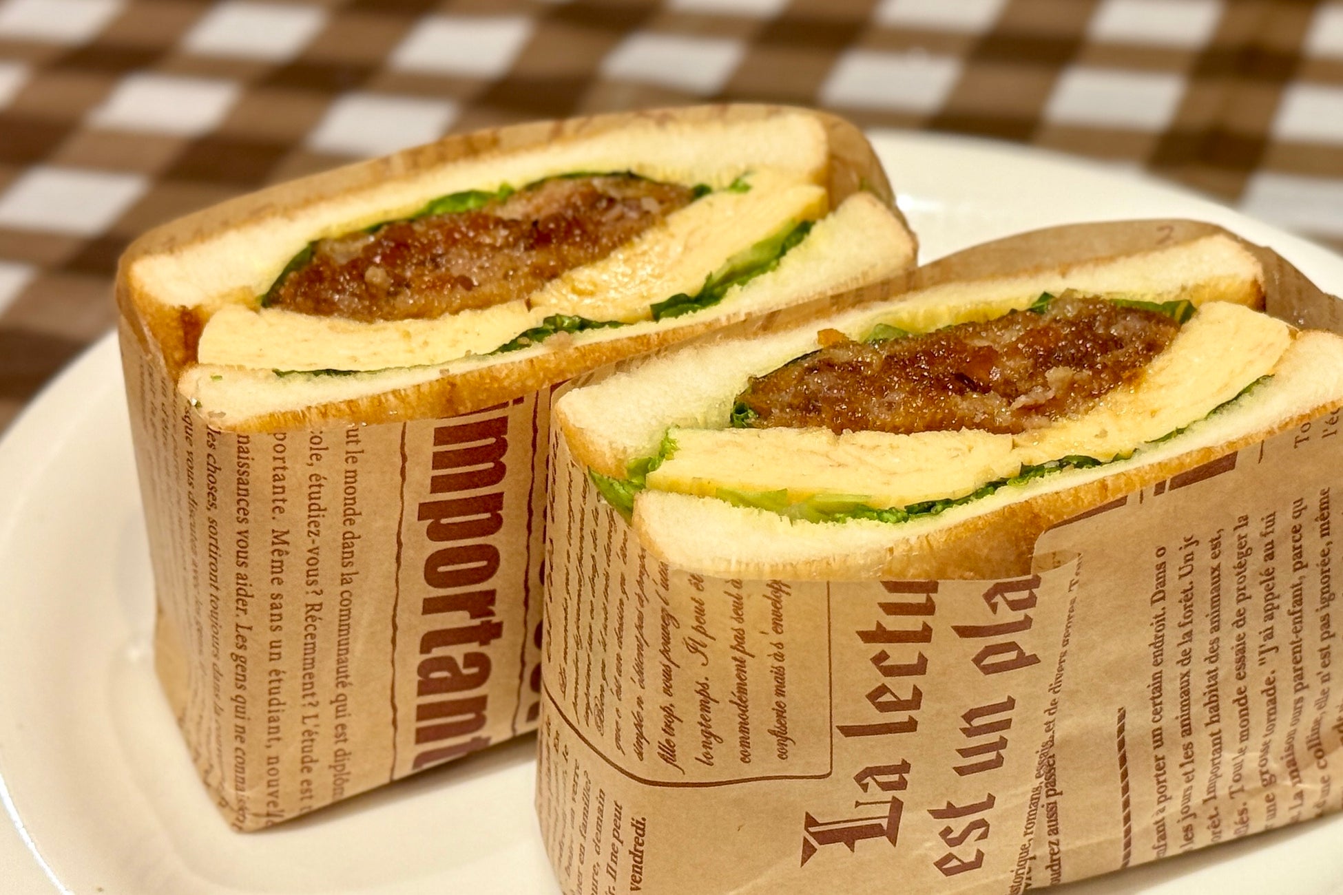 「馬肉メンチカツサンド」は、馬肉ならではのあっさりとした旨みに黒胡椒のアクセントを効かせ、醤油ベースで玉ねぎをたっぷり使った特製ステーキソースで仕上げました。ひと口かじれば、じゅわっと広がる肉汁に甘みとスパイスが重なり合い、思わずもう一口と手が止まらなくなる美味しさです。外はサクッと香ばしく、中はジューシーなメンチカツを、こんがりトーストしたパンでサンド。サクサクとジュワッが同時に押し寄せる食感は、一度食べればクセになるはず。