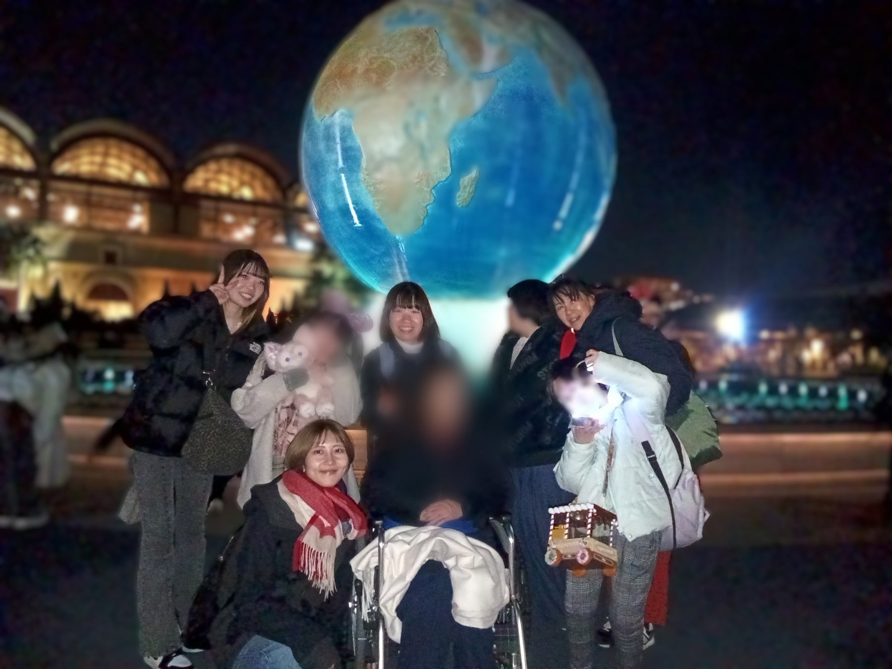 園内を歩き、目当てのアトラクションを楽しみながら、レストランでの食事やお土産選びなど様々な体験を通じて1日を満喫した後、最後は全員最高の笑顔で写真を撮り、素敵な1日を締めくくりました。
