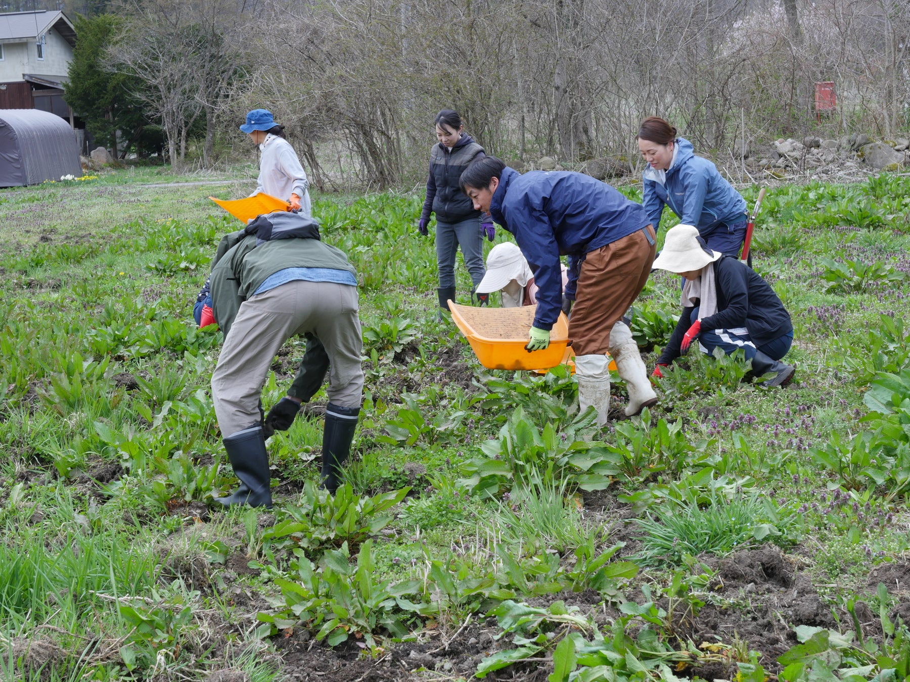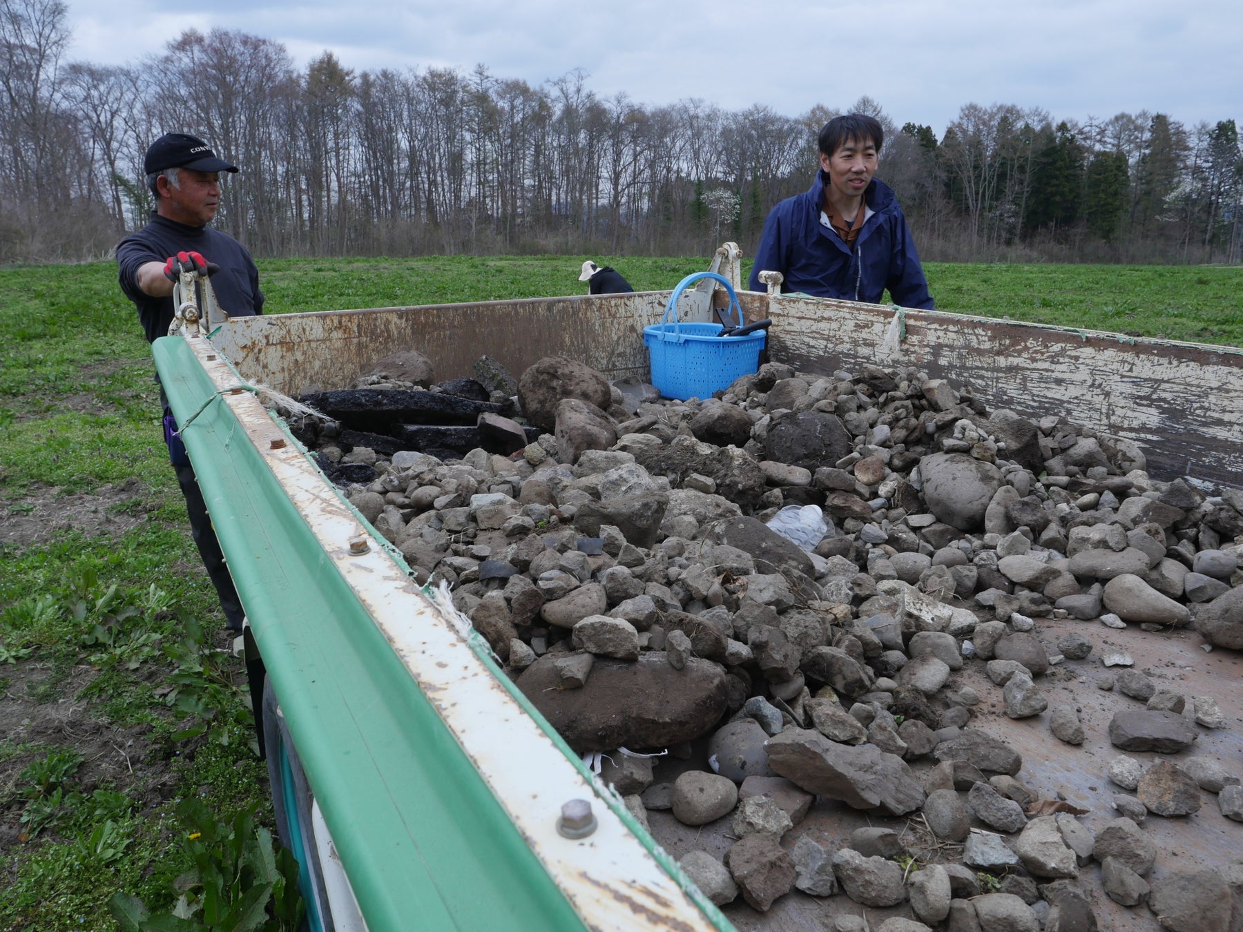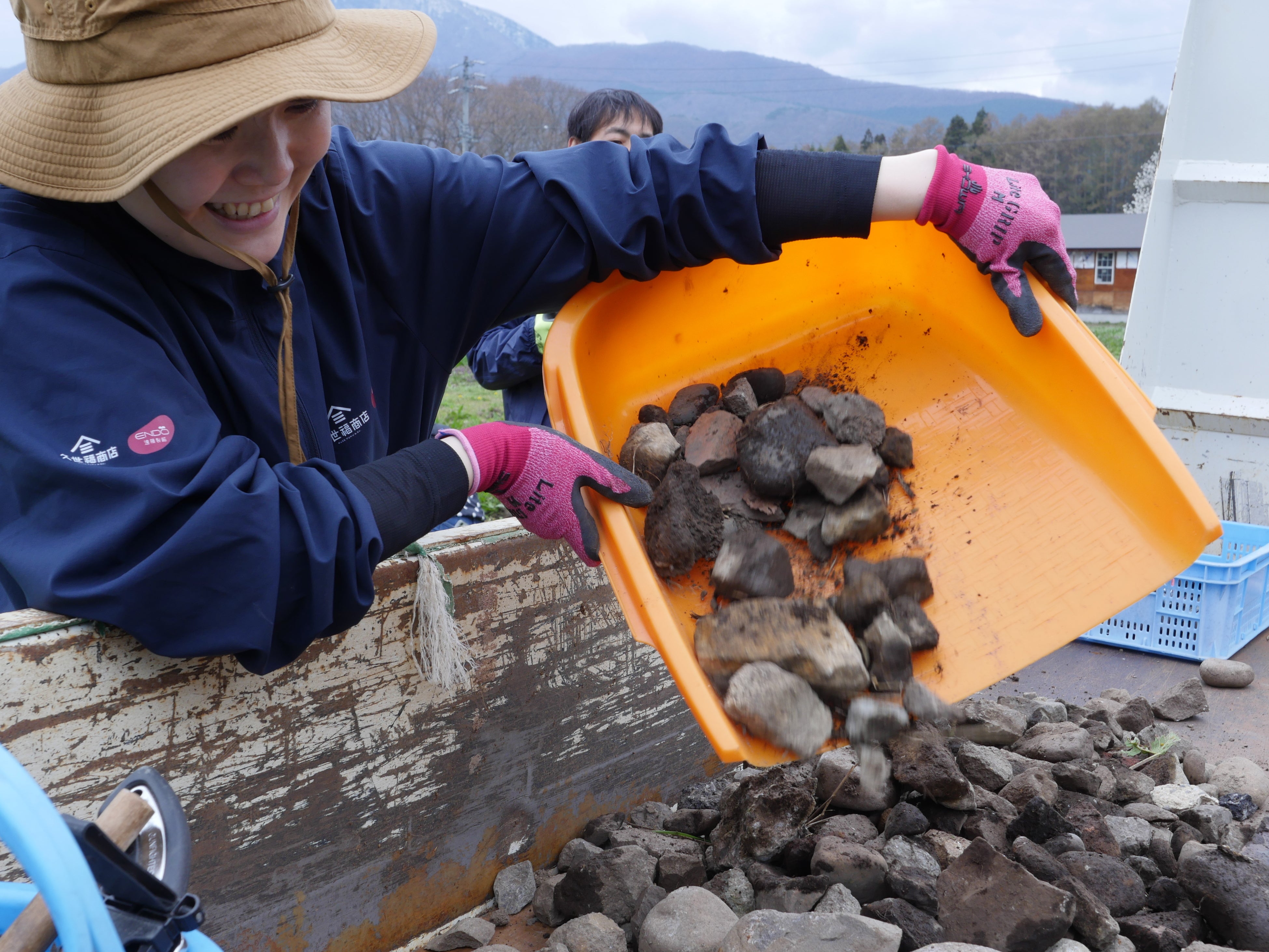 社屋裏の空き地では、野生のイノシシが土を掘り返したことで地中の石が露出。乗用草刈機による除草に支障が出る状態となっていたため、石拾いを実施しました(2023年、2025年にも実施)。石を除去し、適切に草刈りができる環境を整えています。