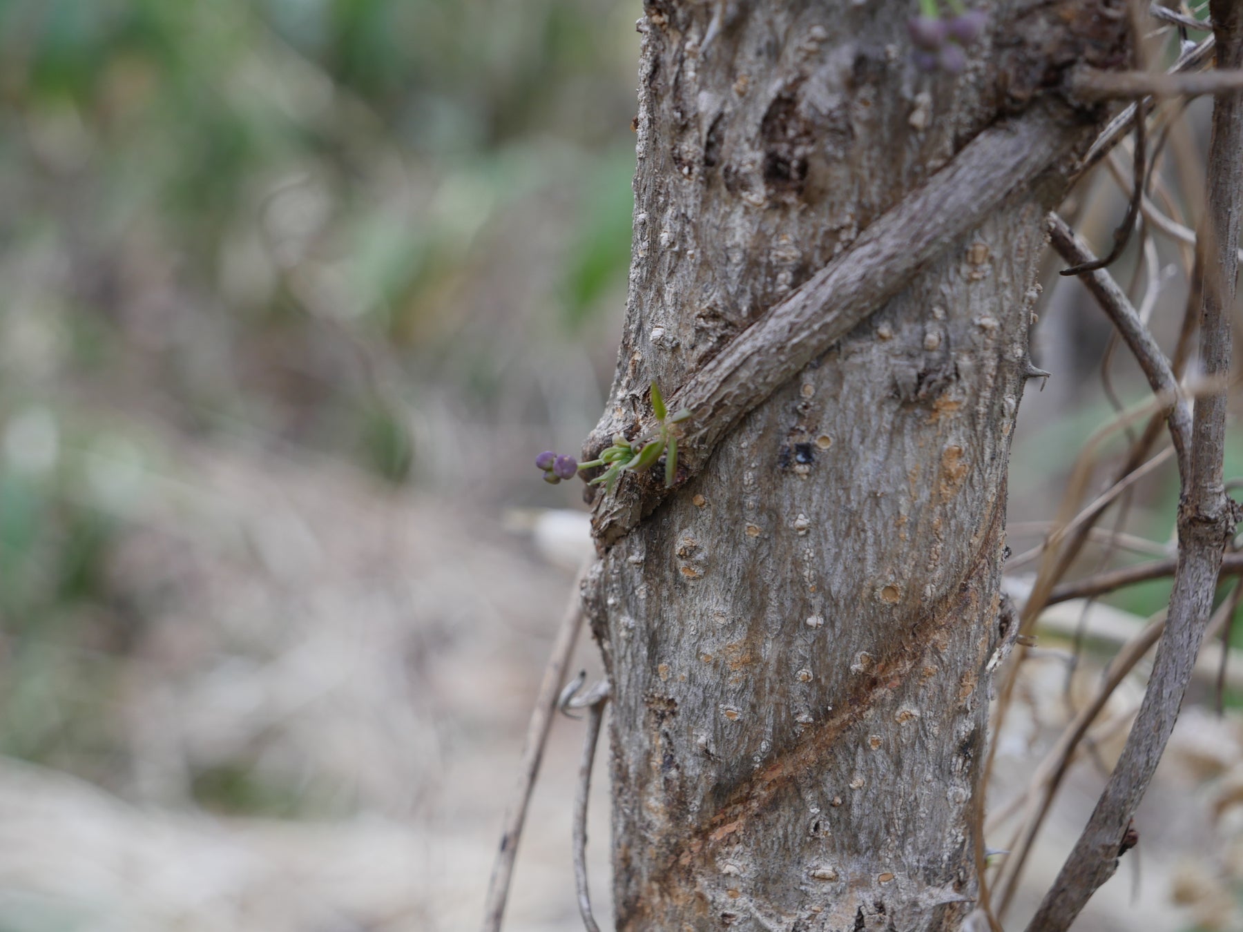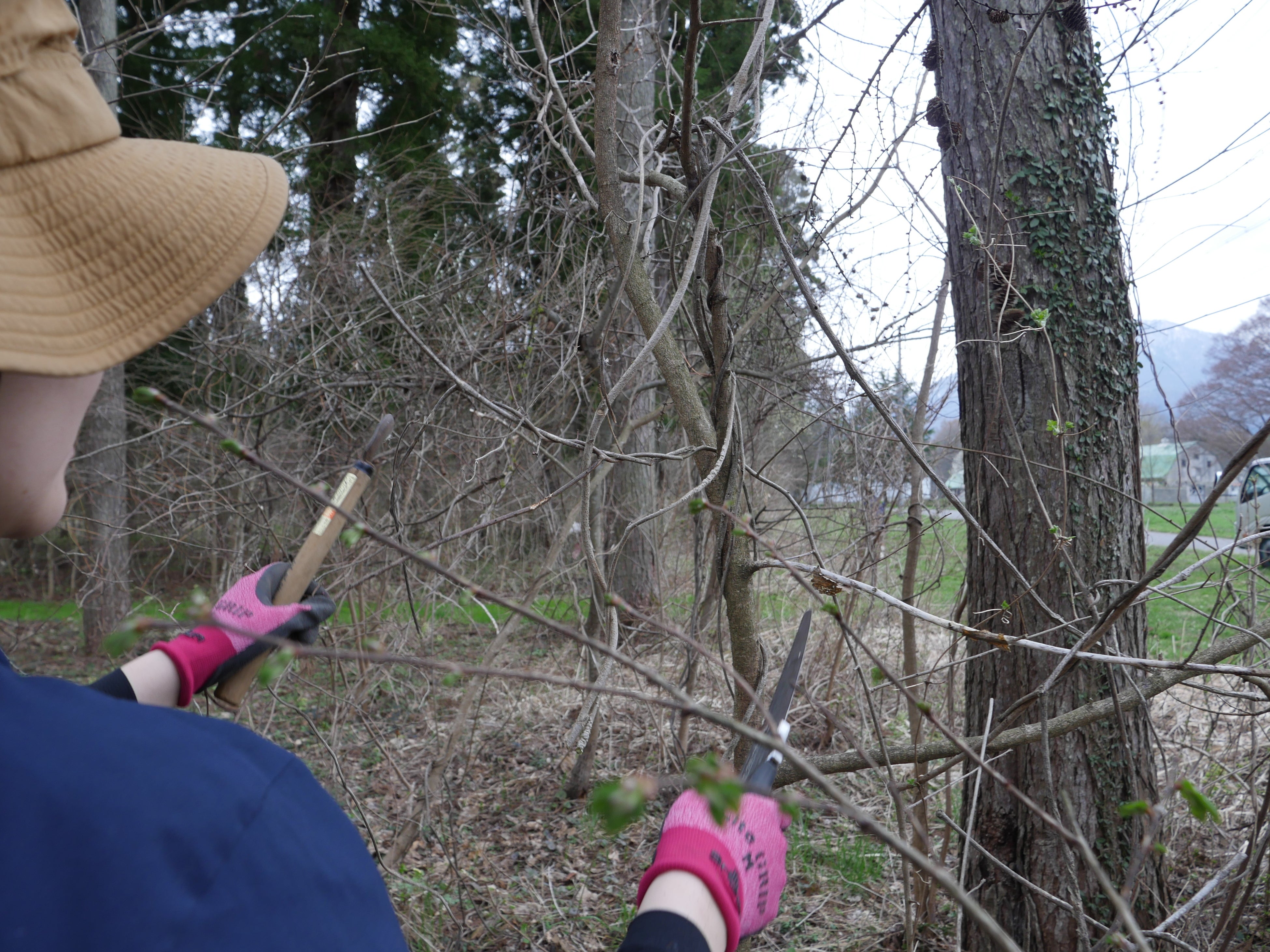 繁茂したツル植物を除去することで、森の健全な育成を助けるとともに、森林内の見通しを改善しました。ツル植物は成長に伴い木を締め付けて傷めてしまう原因となります。