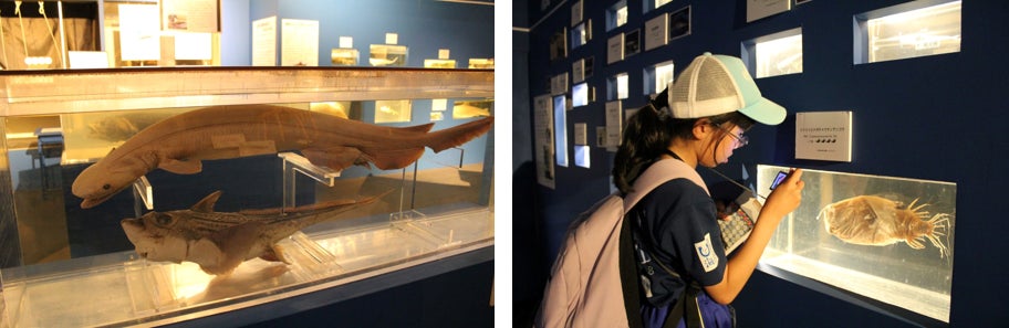 駿河湾深海生物館では、深海のサメ「ラブカ」や、駿河湾で発見された新種「ヨコヅナイワシ」の標本などを観察。キッズからは、「知らない生き物のことを、はく製や標本で詳しく学ぶことができておもしろかった」などの声が聞かれました。