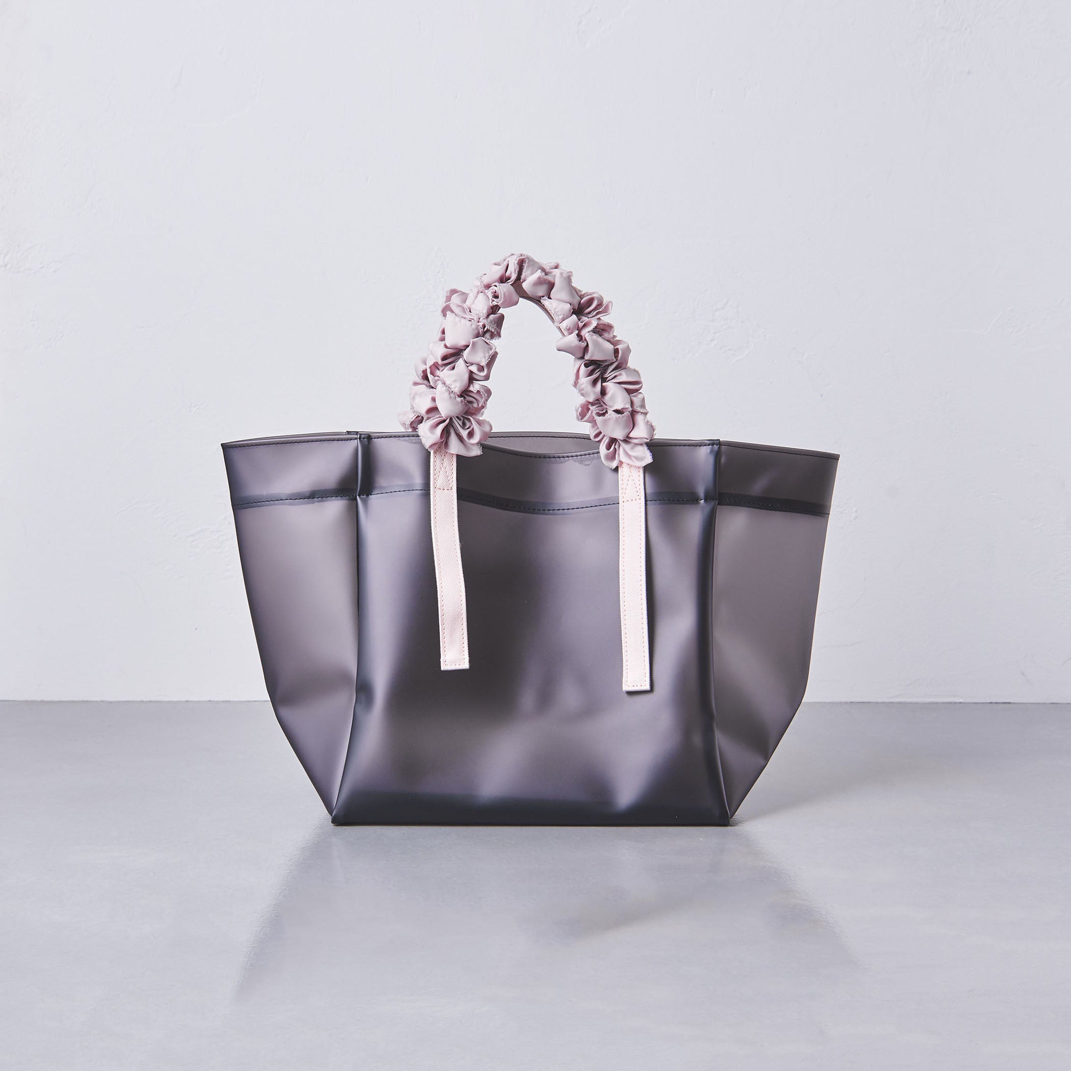 定番のグレープハンドルトートをベースにボディをマットなPVC生地で別注しました。