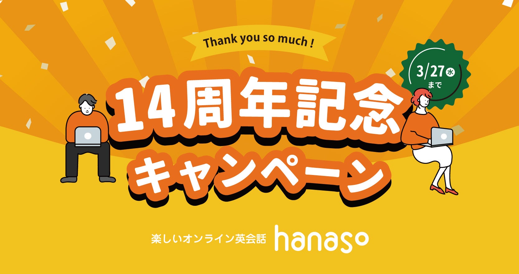 オンライン英会話スクール「hanaso」新規入会対象『14周年記念キャンペーン』実施のお知らせ