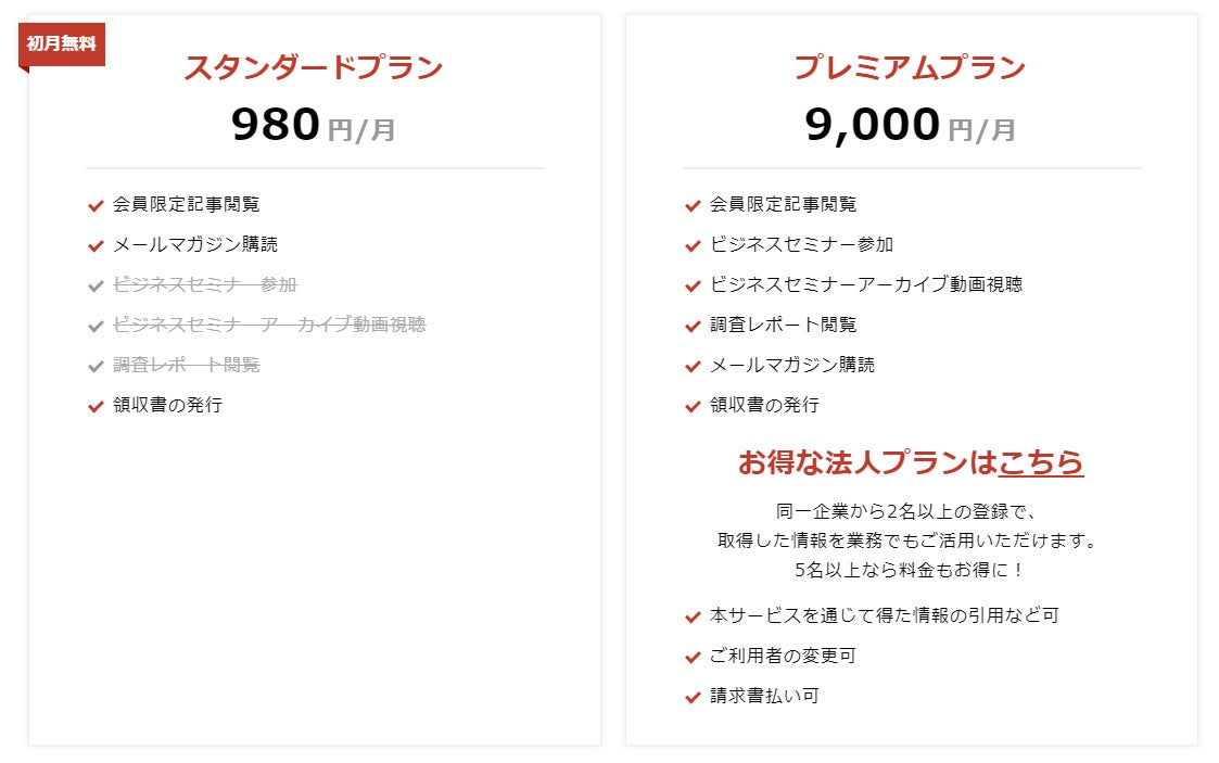 ・プレミアムプラン(法人契約)は一度こちらにお問合せ下さい。