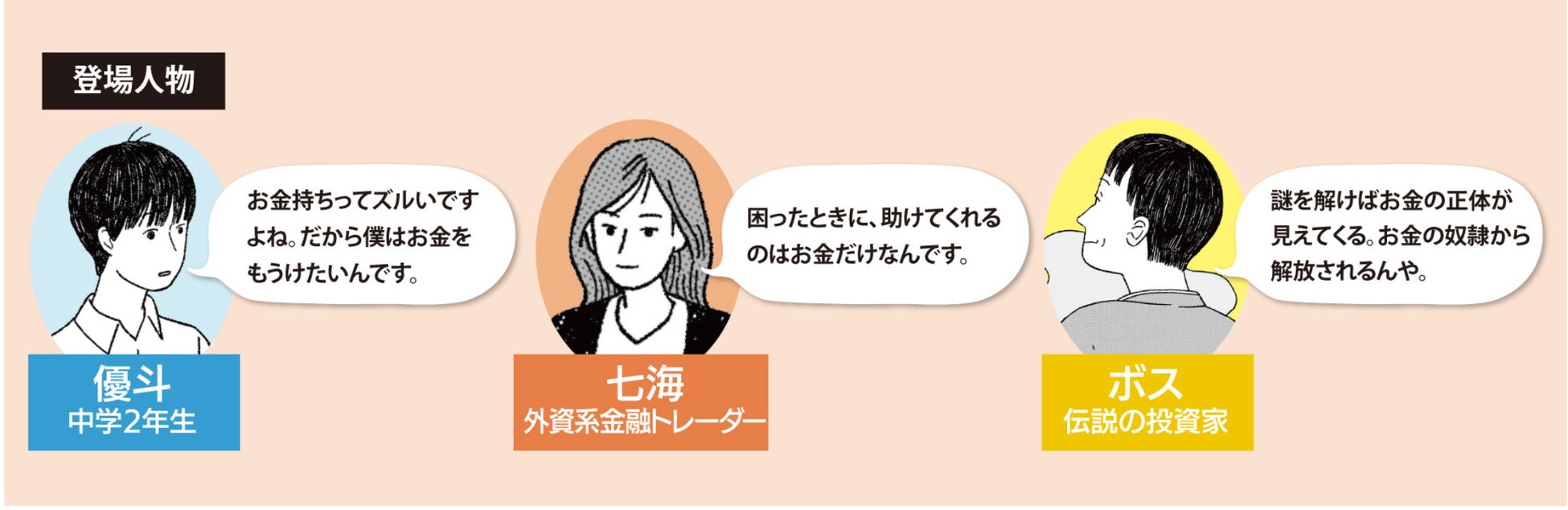 ある大雨の日、優斗は、ひょんなことで知り合った投資銀行勤務の七海とともに、謎めいた屋敷へと入っていく。そこにはボスと呼ばれる大富豪が住んでおり、「この建物の本当の価値がわかる人に屋敷をわたす」と告げられる。その日からボスによる「お金の正体」と「社会のしくみ」についての講義が始まる。
