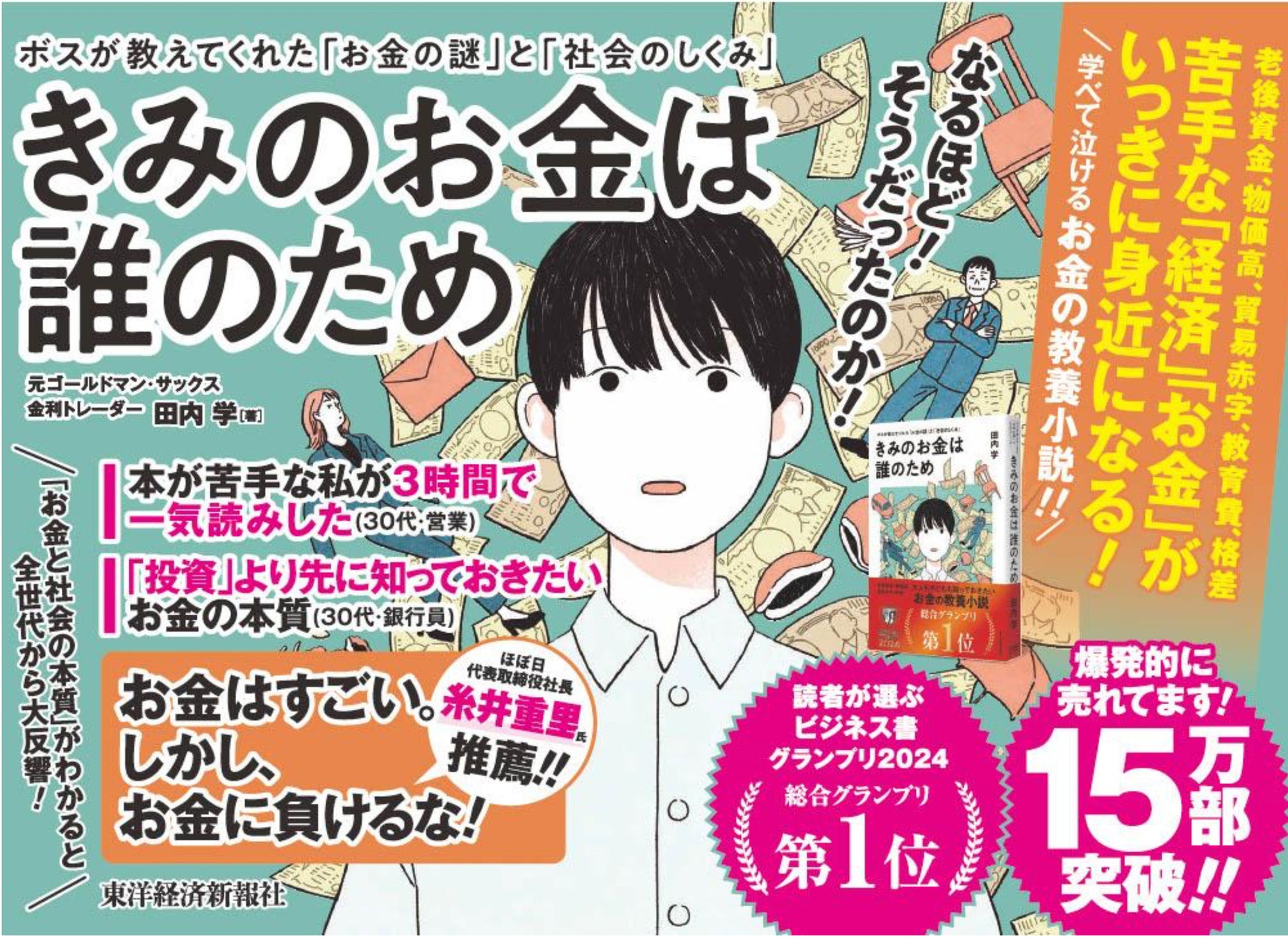 本書は元ゴールドマン・サックス金利トレーダーの田内学氏による、小説仕立てのマネー論です。「いかにお金を増やすか」という資産運用の話ではなく、「お金の本質・経済のしくみ・働くことの意味」について、予備知識なしで、楽しみながら平易に学べる内容となります。