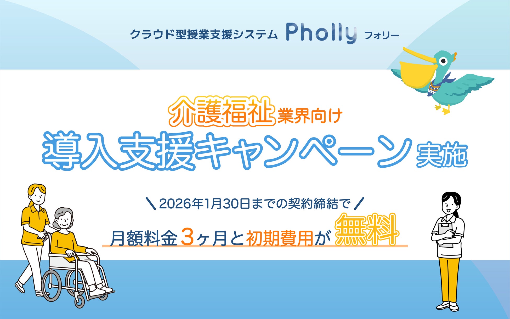 初期費用・月額料金3ヶ月無料!介護福祉教育のDXを支援!授業支援システム「Pholly(フォリー)」キャンペーン